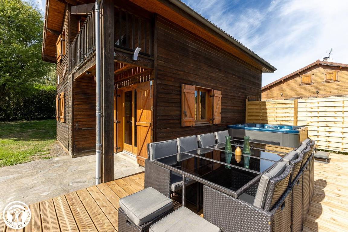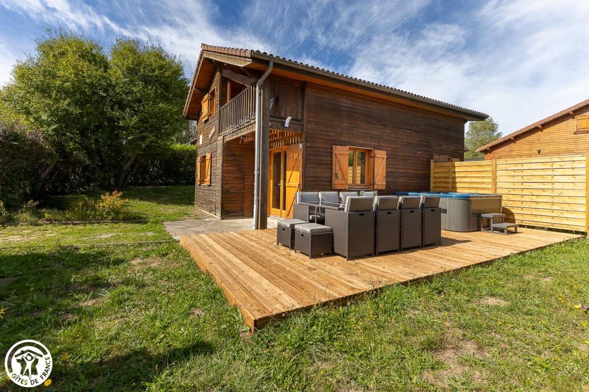 „Beau chalet entouré de forêts avec le village et les commerces à 10 ou 15 minutes à pied. Un lac à 2mn à pied. Tout cela au calme. Le Chalet est très bien équipé avec (cerise sur le gâteau) un grand jacuzzi. Plusieurrandonnées à faire au départ du Lac. Nous avons passés un excellent séjour à 7 personnes.“
