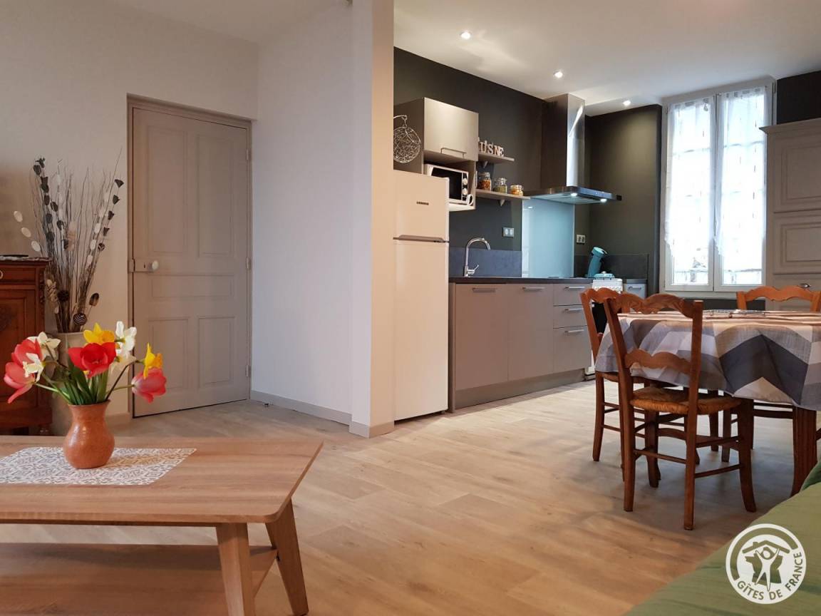 „Des propriétaires au bon soin des hôtes, un gîte calme et bien situé au centre de ce magnifique village classé sans oublier la terrasse entourée d'un jardin fleuri et bien entretenu merci pour l'accueil le gâteau aux noix et le superbe bouquet de muguet“