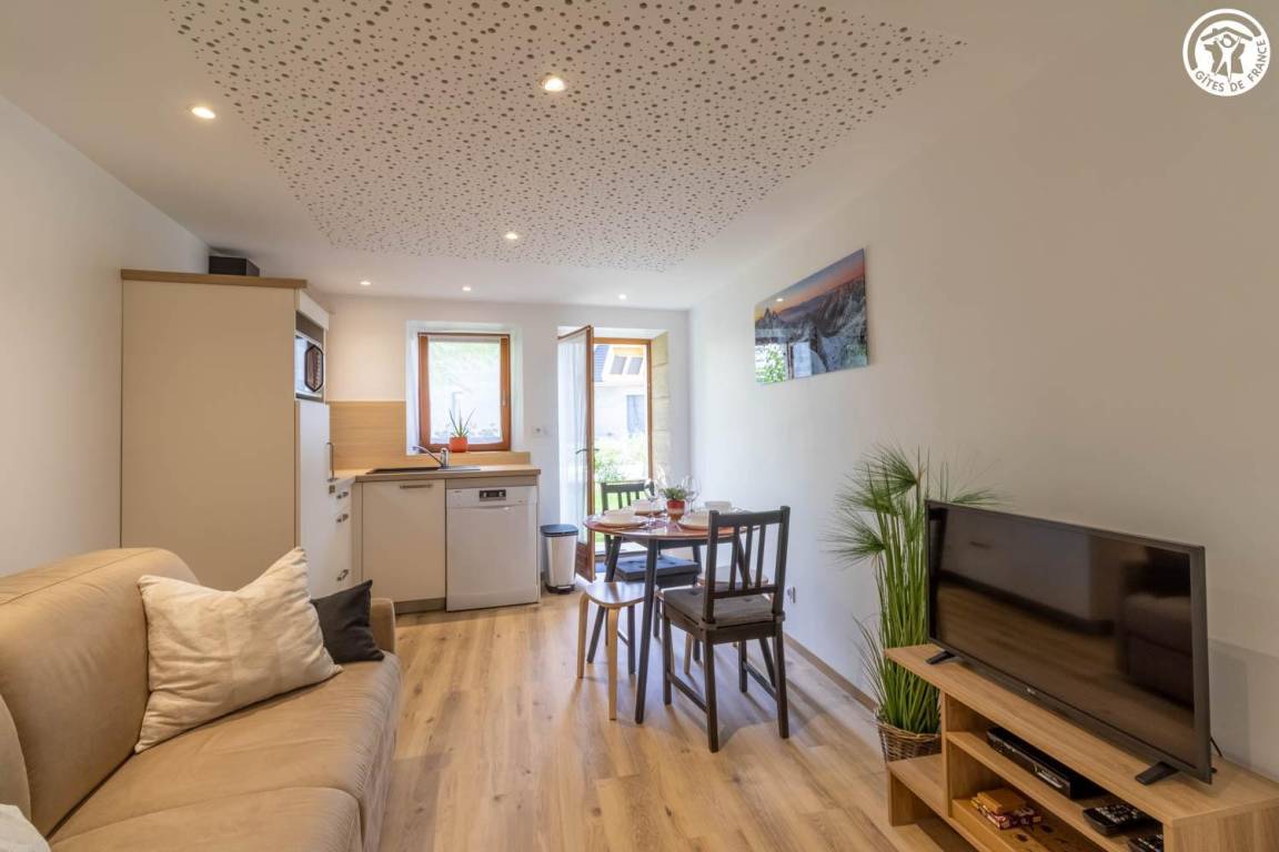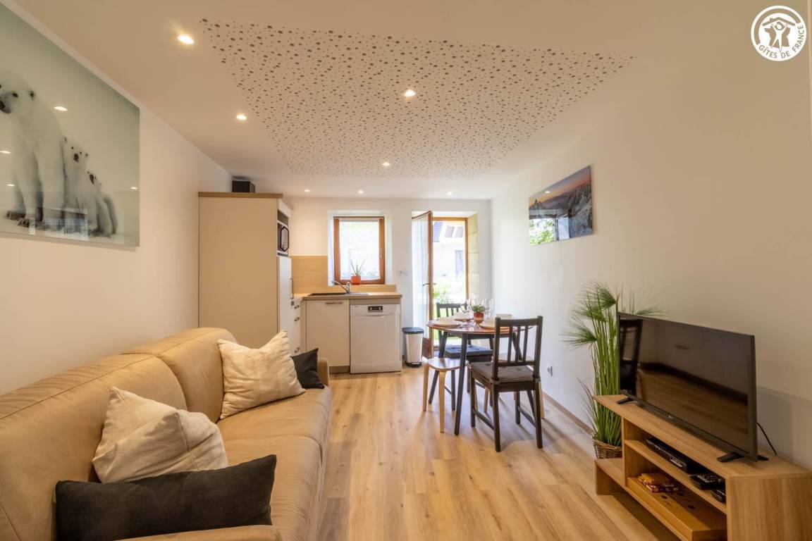 „Gite situé en moyenne montagne, loin de la cohue et de la circulation dans la vallée; Gite à l'état neuf Endroit très calme reposant Petit jardin à disposition avec chaises, table. Accueil très cordial des propriétaires qui résident dans une maison mitoyenne. Excellent séjour, je recommande ce gite“