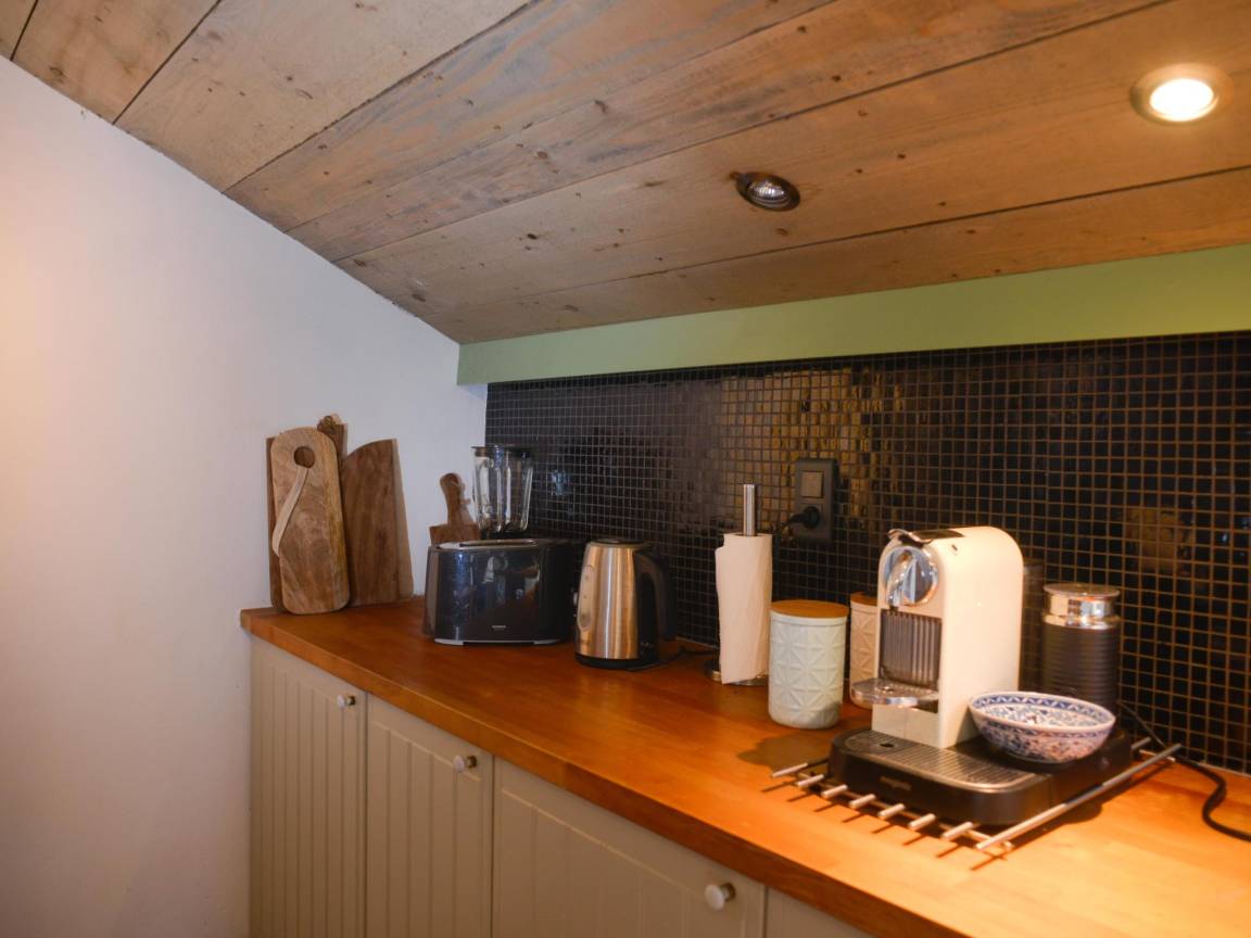 Nebengebäude: Wohnzimmer mit TV, Sitzecke , Küche mit Wasserkocher, Toaster, Kochherd(Gas), Backofen, Kühl-/Gefrierkombination , Schlafzimmer mit Doppelbett(Doppelbettdecke, 160 x 200 cm) , Badezimmer mit Badewanne, Dusche, Waschbecken, Toilette