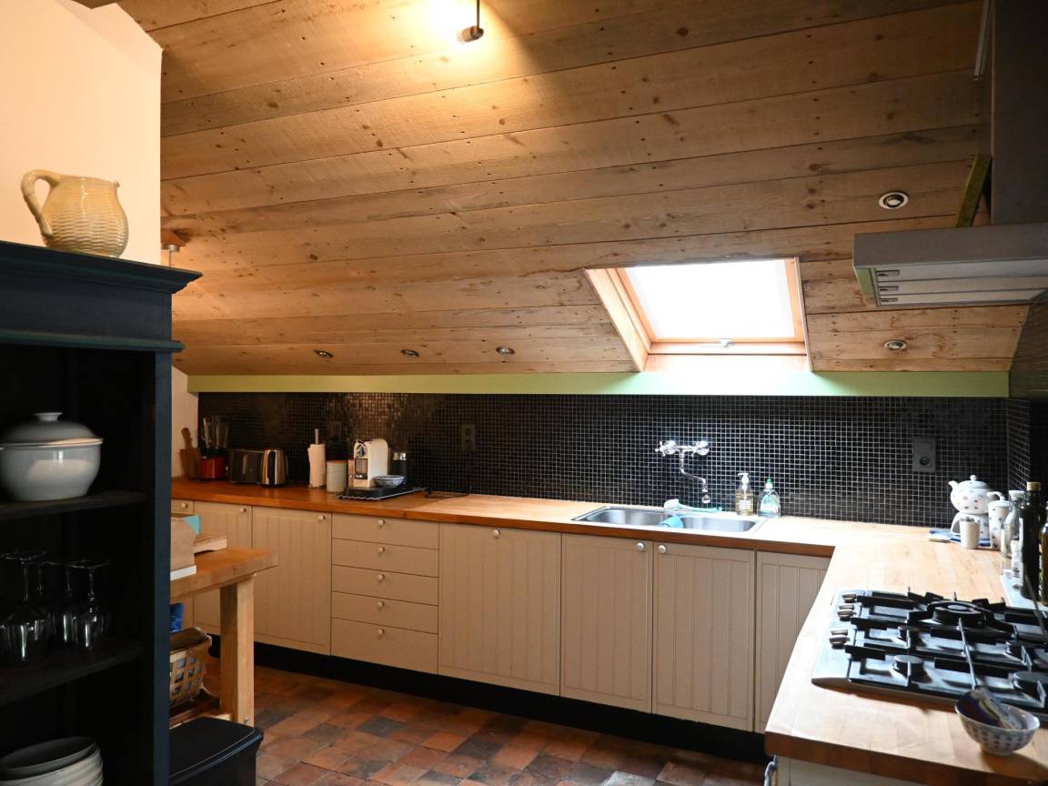 Layout : Parterre: Küche mit Wasserkocher, Kochherd(Gas), Dunstabzugshaube, Kaffeemaschine(Espresso), Geschirrspüler, Kühl-/Gefrierkombination , Toilette mit Toilette , Wirtschaftsraum mit Wäschetrockner, Waschmaschine