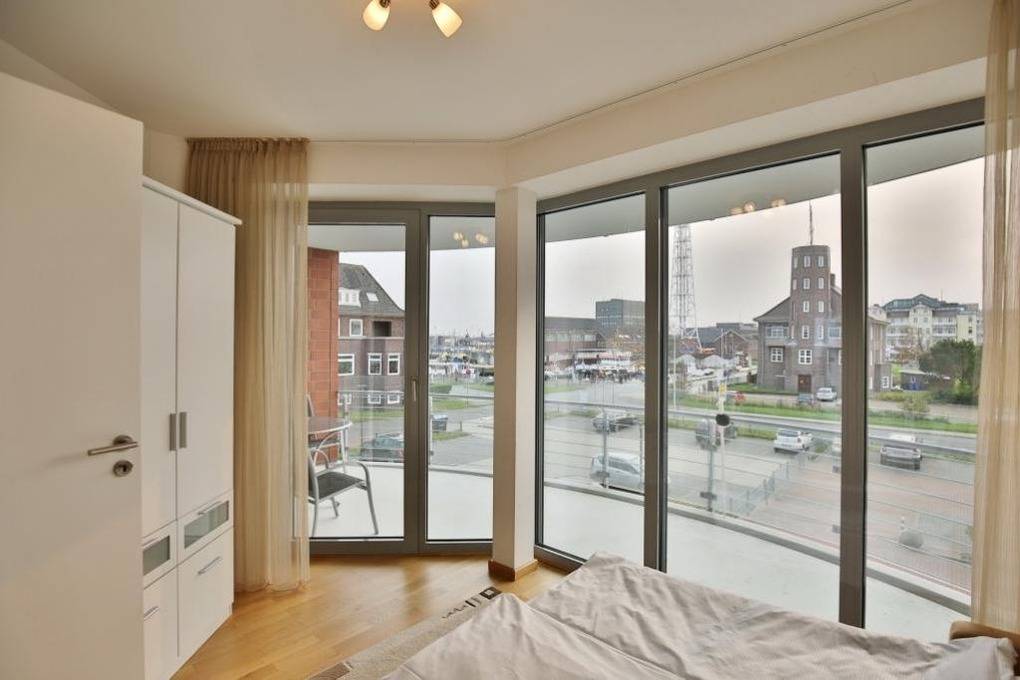 Großzügige 102m² Wohnung in der 1.Etage. Hier haben Sie die Traumseesicht auf den Weltschifffahrtsweg und die Hafenanlagen. 1 Schlafzimmer mit Doppelbett und TV, 1 Schlafzimmer mit Schlafsofa, 1 Bad/Du/Wc und 1 Gäste-Wc, sehr großes Wohnzimmer mit komplett ausgestatteter Küchenzeile, TV u. BlueRay DVD, Radio mit Dockingstation, 2 große, windgeschützte Balkone (nord+süd). Alle Räume sind mit Parkett gestaltet und verfügen über Rollläden. Zur Wohnung gehört ein reservierter Pkw-Stellplatz in der Tiefgarage. Keine Haustiere. Nichtraucher.