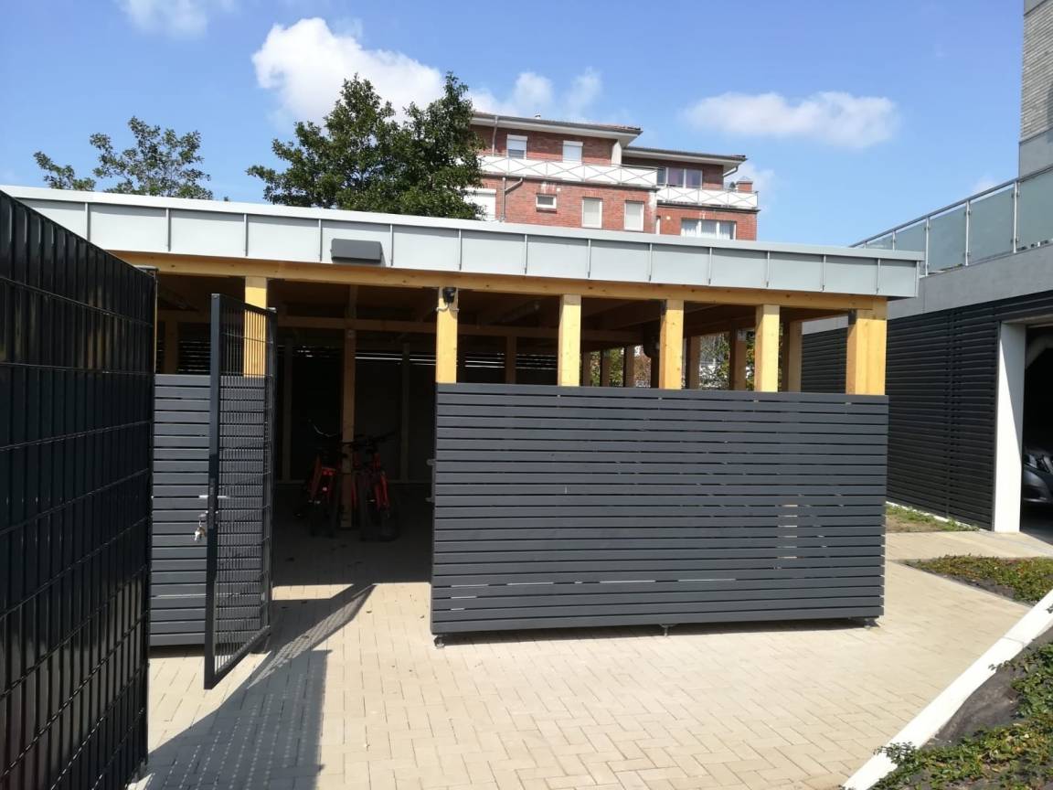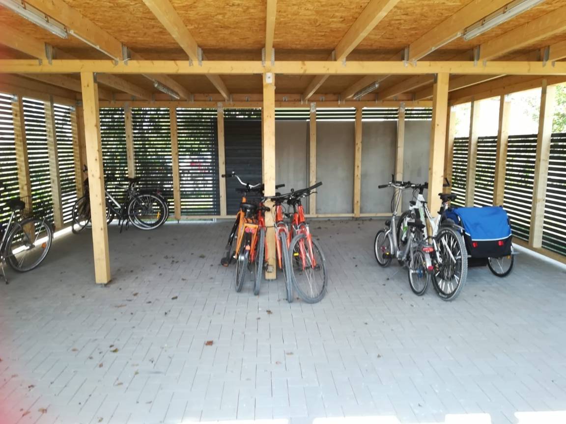 Im Abstellraum steht ein Fahrrad zum "Brötchen holen" bereit.