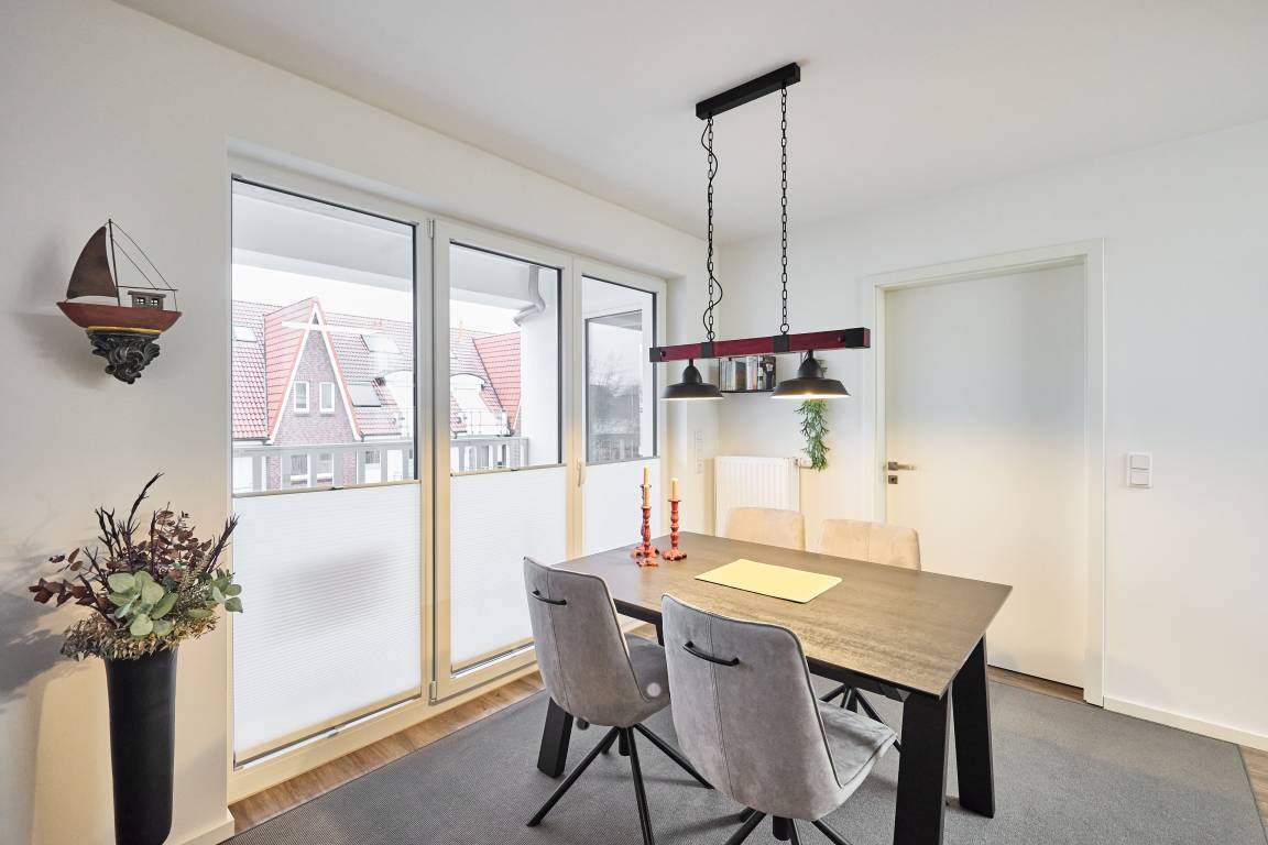 Willkommen in der Ferienwohnung 12 im 2. Obergeschoss des Hauses North Side, einem stilvollen 3-Raum-Domizil in bester Lage in Duhnen! Nur etwa 150 Schritte vom Strand entfernt, erwartet Sie hier ein perfekter Ort für einen erholsamen Urlaub. Genießen Sie den West-Balkon mit seitlichem Meerblick und lassen Sie sich von der komfortablen Ausstattung verwöhnen.