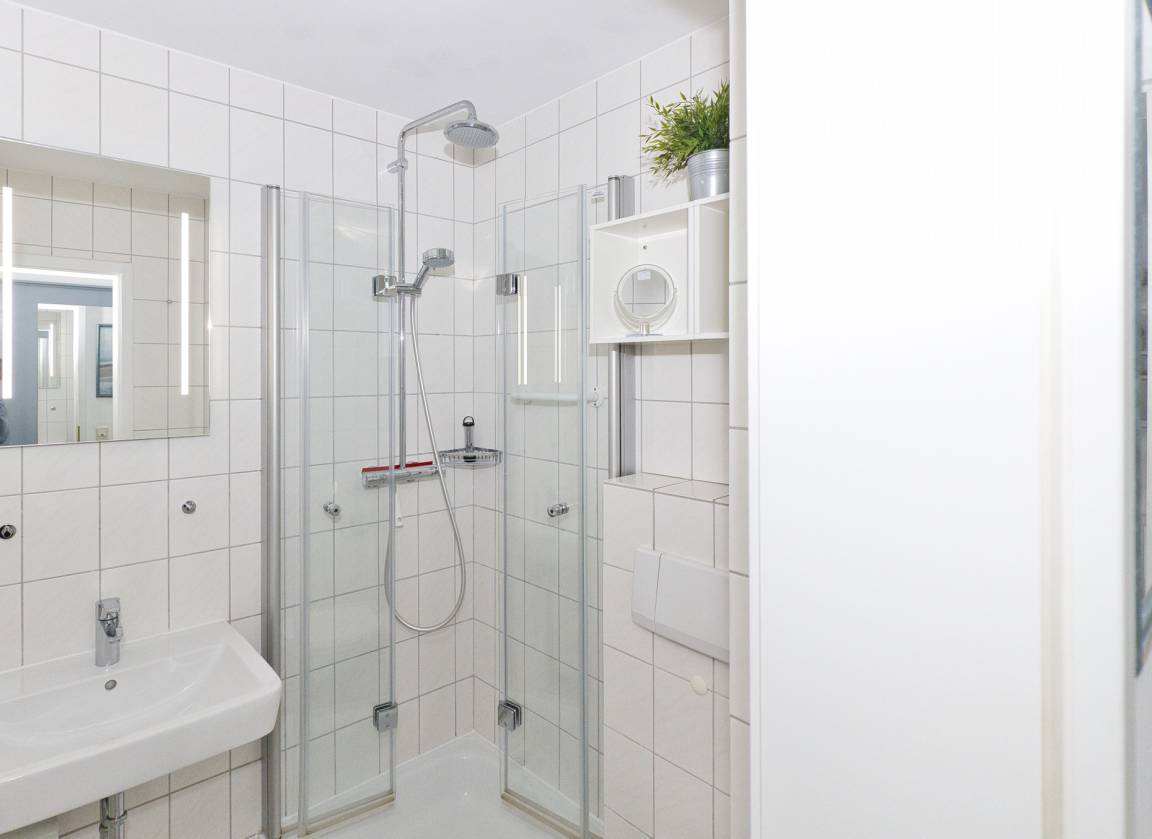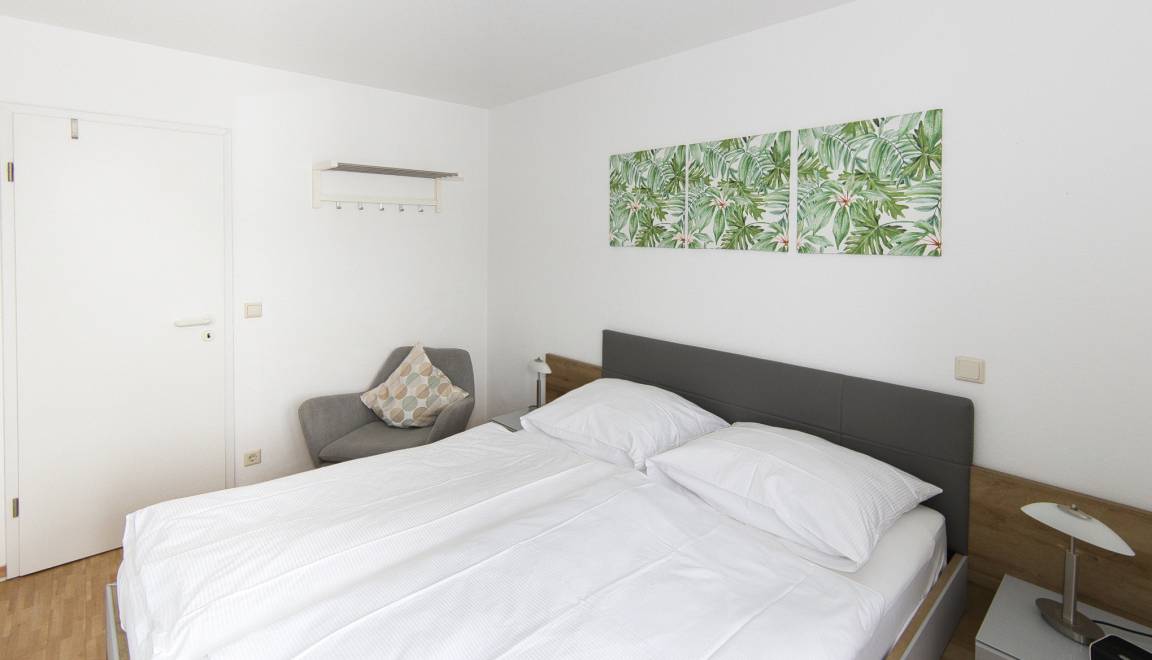 Das Schlafzimmer ist mit einem Doppelbett (bequeme Betthöhe: 55 cm) ausgestattet, um Ihnen erholsame Nächte zu garantieren. Handtücher, Kinderbett und Hochstuhl können auf Wunsch gegen eine kleine Gebühr bereitgestellt werden. Ein PKW-Stellplatz befindet sich direkt vor dem barrierefreien Weg zum Eingang. Der Zugang zum Haus und zum Aufzug ist ebenfalls barrierefrei. Der wohnungseigene Keller steht Ihnen zur Verfügung, um Koffer, Kinderwagen, kleine Kinderfahrräder, Fahrradanhänger o.ä. zu lagern.