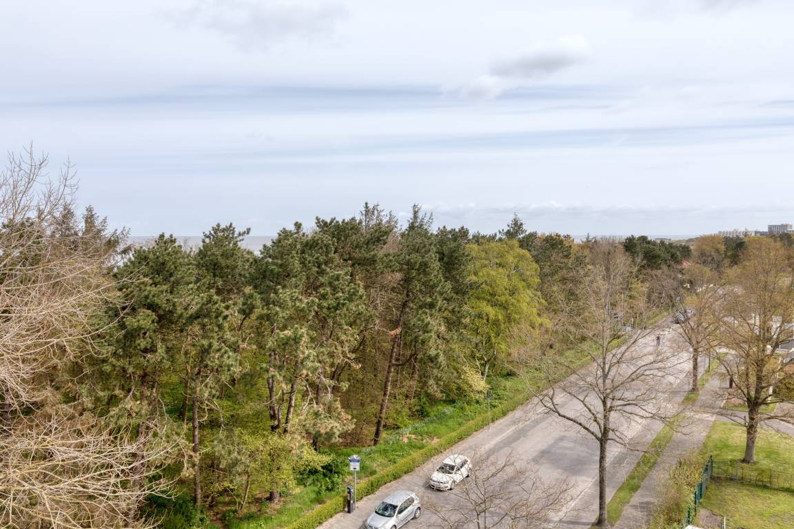 Das Appartement 77 ist ein 2-Raum-Apartment im 6. Obergeschoss für bis zu 3 Personen mit 39 qm. Der möblierte Ostbalkon mit Meerblick bietet morgens Sonne und nachmittags Schatten.