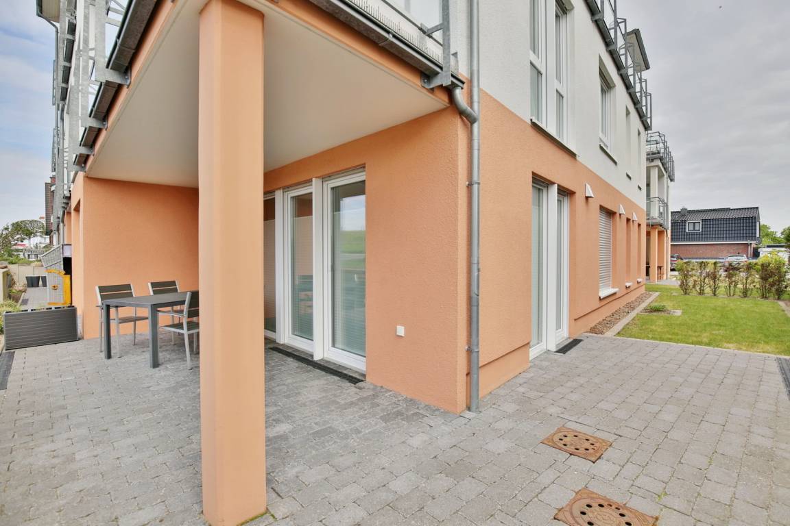 Sehr schöne und hochwertige 3-Raum-Ferienwohnung im EG gelegen mit schöner Sonnenterrasse, Wohnzimmer mit toll ausgestatteter Küchenzeile (Back, Mikrow., Geschirrsp., Gefrierfach, Tassimo-Maschine), 1 Schlafzimmer mit Doppelbetten, 1 Schlafzimmer mit 2 Einzelbetten, beide Schlafzimmer mit Einbaumöbeln, alle Räume mit elektr. Außenjalousien verdunkelbar und teilweise mit Insektenschutz, 2 x DU/WC mit Föhn, beide Bäder mit Fußbodenheizung, 3 x SAT-TV, DVD u. BlueRay, CD-Stereo, kostenfreies WLAN-Internet, große Terrasse (süd/west), keine Haustiere gestattet, Nichtraucherwohnung, reservierter und sehr breiter PKW-Stellplatz #1 am Haus.