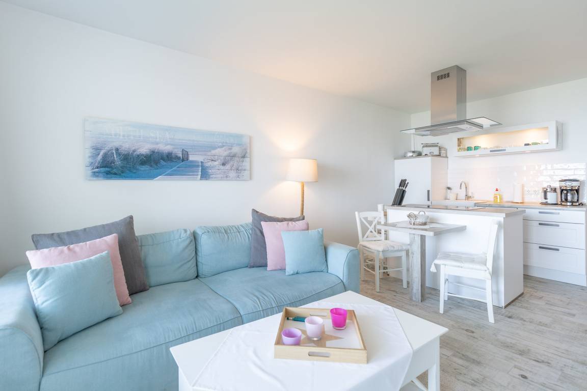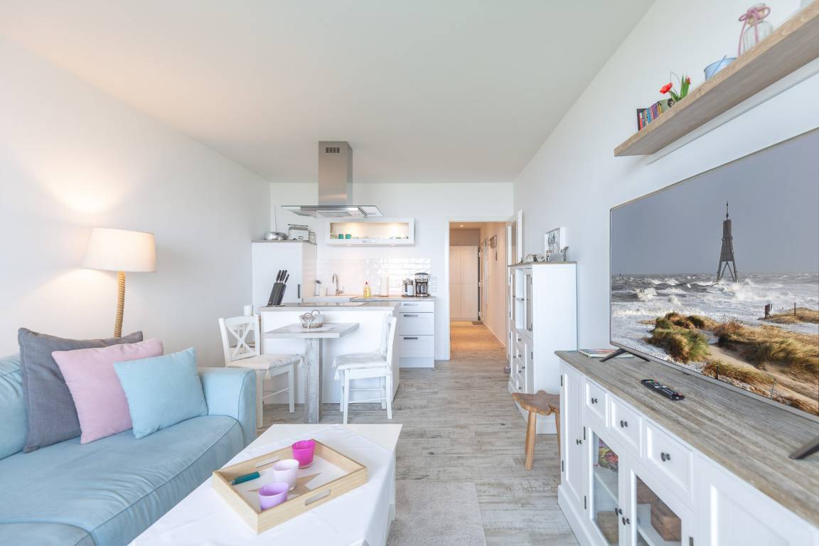 Die 45 m² Ferienwohnung mit spektakulärem Meerblick und Balkon bietet eine herrliche Aussicht auf die Elbe und den Weltschifffahrtsweg mit seinen vorbeifahrenden Ozeanriesen. Schon morgens auf den Balkon treten und beim Sonnenaufgang auf die glitzernde Wasseroberfläche blicken – einfach unbezahlbar. Und drinnen, da erwartet Sie eine liebevoll und modern eingerichtete Premium-Ferienwohnung mit einem herrlich unaufgeregten Ambiente. Perfekt für einen erholsamen Urlaub am Meer.