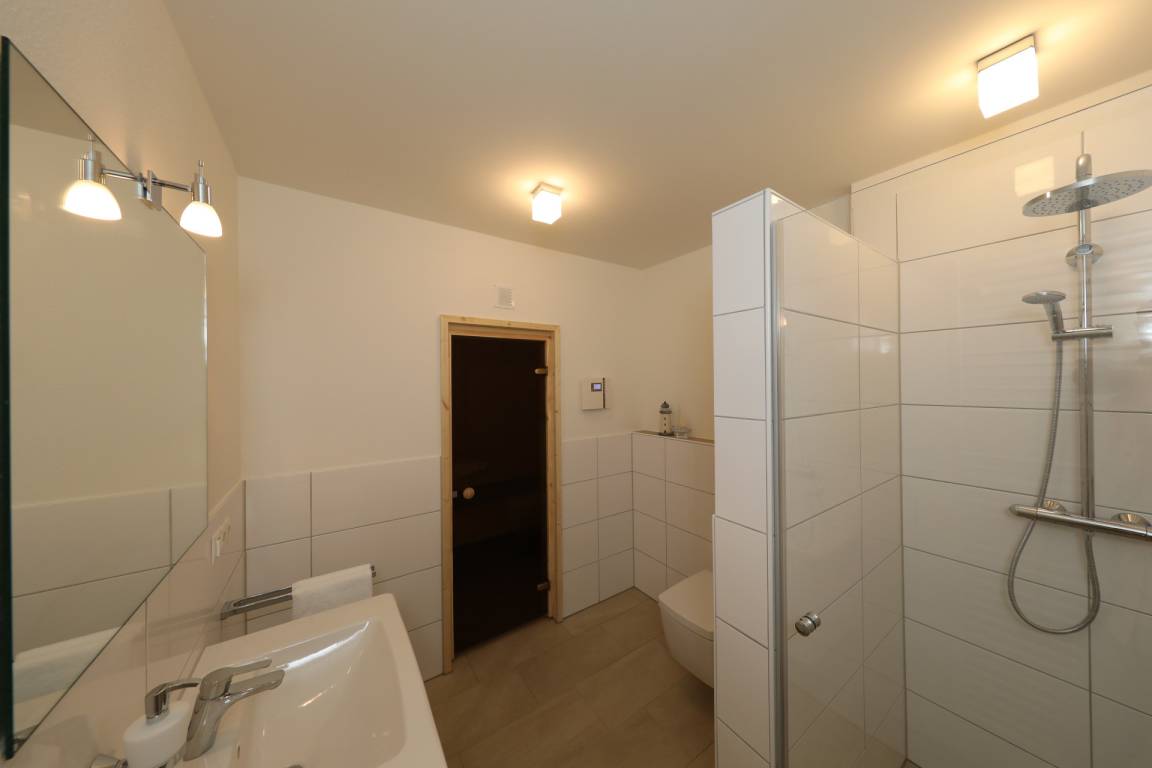 "Quartier Hohe Geest 21" in unserer neu erbauten, modernen Ferienwohnung mit Sauna, wohnungseigenem Tiefgaragenparkplatz und nur 400 m vom schönen Sandstrand in Sahlenburg entfernt!