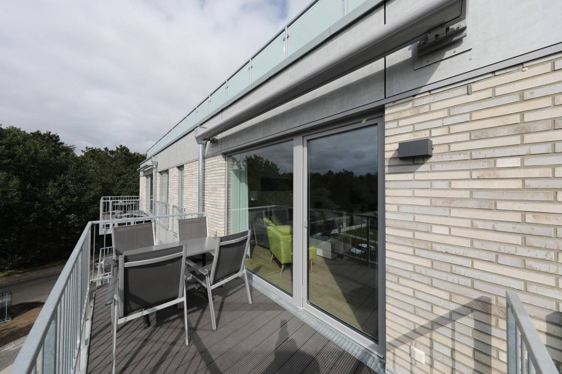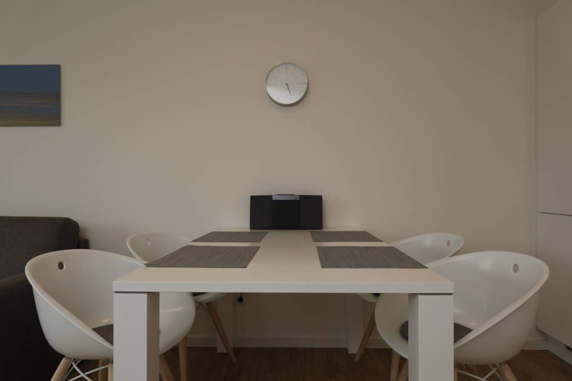 Genießen Sie ab dem Nachmittag die Sonne und den seitlichen Meerblick auf unserem Balkon mit Markise. Im offenen Essbereich lassen sich gemütliche Abende bei Gesellschaftsspielen oder einem Glas Wein verbringen. Gönnen Sie sich nach einem abwechslungsreichen Tag eine entspannte Auszeit in der wohnungseigenen Sauna.
