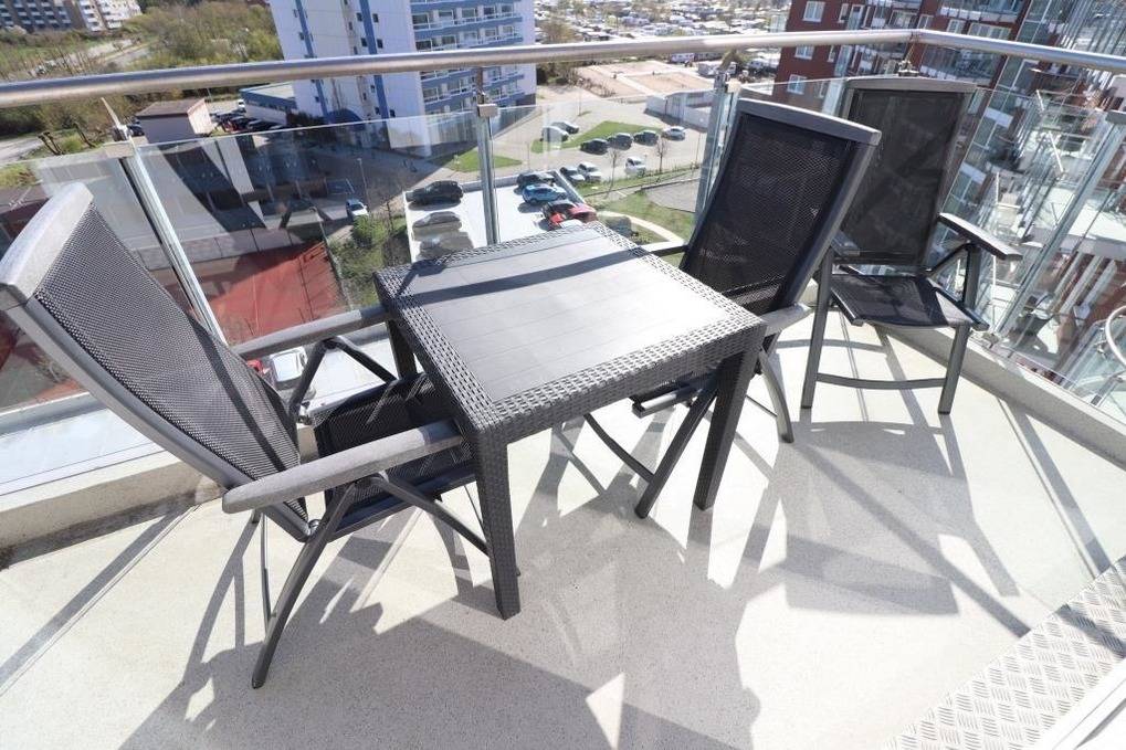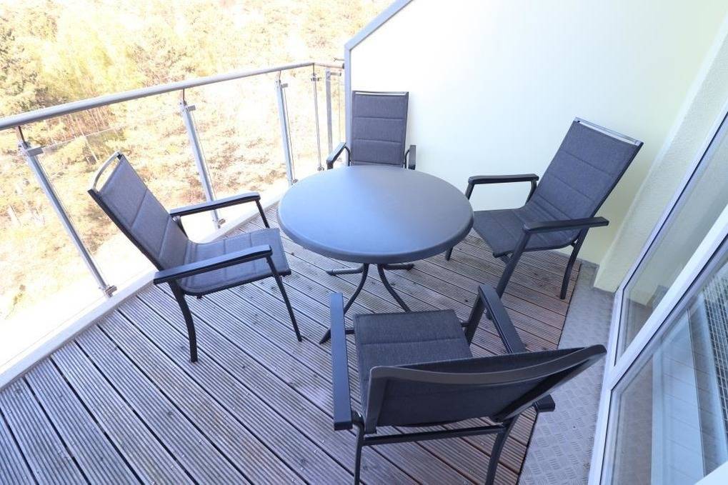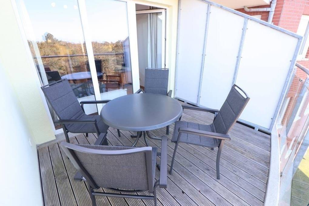 Die moderne Unterkunft für bis zu 4 Personen, nur 200m vom Sahlenburger Strand entfernt, bietet Balkonblick, gute Küchenausstattung und einen kleinen Bäcker vor Ort – ideal für entspannte Urlaubstage!