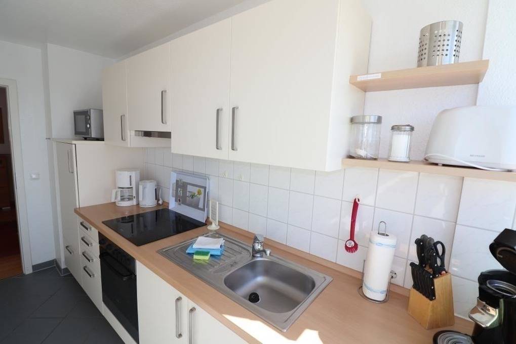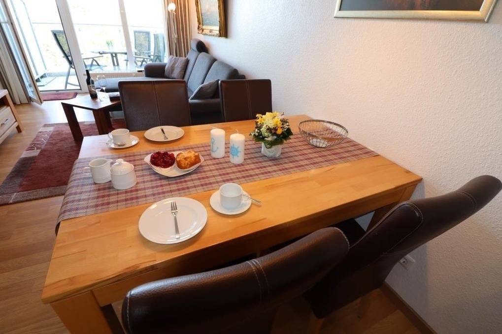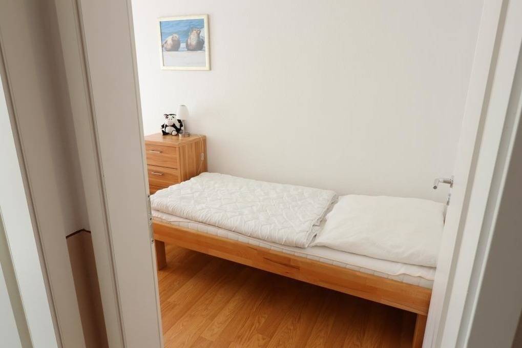 Die Wohnung B6.1 im Haus Nordseebrandung bietet Platz für bis zu 4 Personen. Ein großzügiger Schlafraum verfügt über ein Doppelbett (1,80m x 2m), während im zweiten Raum zwei Einzelbetten bereitstehen. Der helle und freundliche Wohnraum ist mit einem gemütlichen Esstisch und einem TV-Gerät ausgestattet. Die separate, gut ausgestattete Küche eignet sich ideal zum Kochen. Das renovierte Badezimmer bietet eine ebenerdige Dusche und WC. Kostenloses WLAN steht zur Verfügung. Haustiere sind willkommen, und alle Wohnungen sind Nichtraucherwohnungen. Gästen stehen in der Tiefgarage kostenlose Parkplätze zur Verfügung. Waschmaschine und Trockner sind gegen Gebühr im Waschraum im Keller von Eingang A nutzbar. In jedem Eingang befindet sich ein Fahrradraum für die sichere Unterbringung von Fahrrädern. Eine kleine Erstausstattung wird für den ersten Tag bereitgestellt.