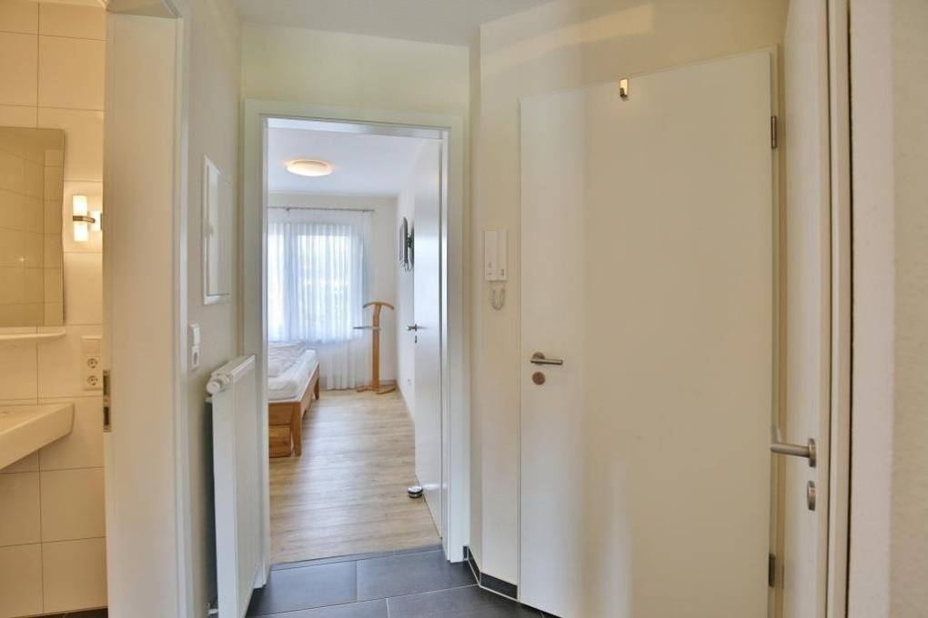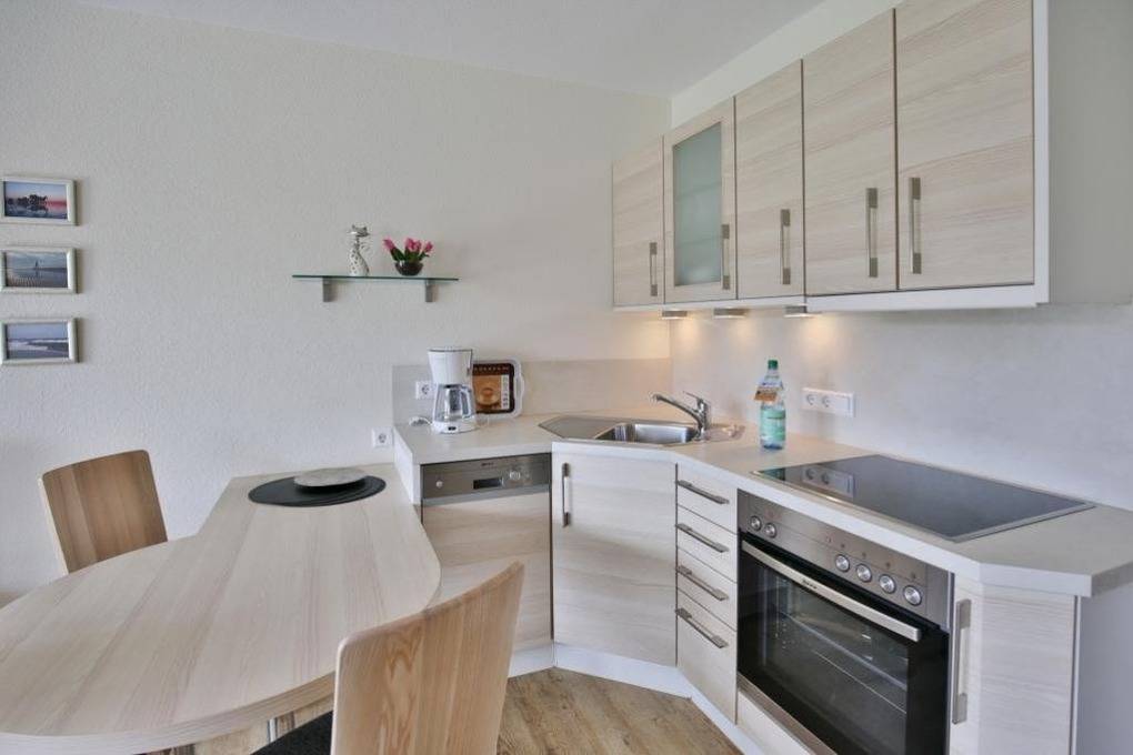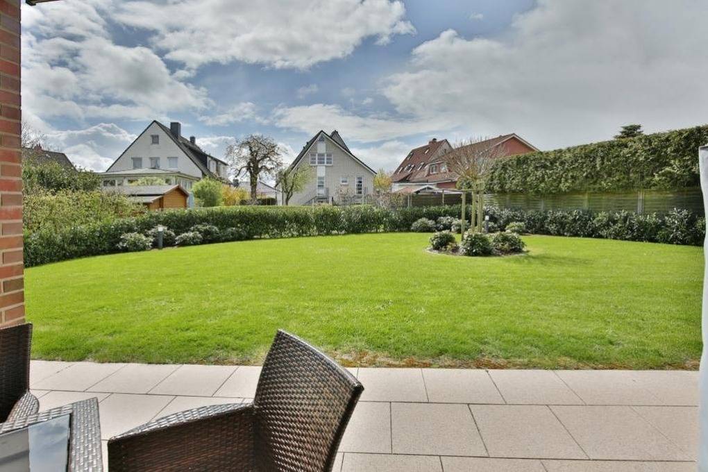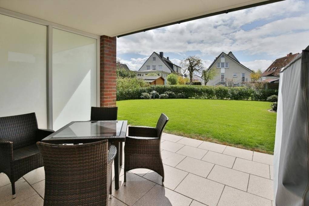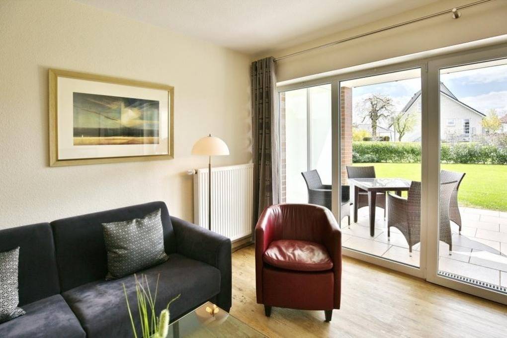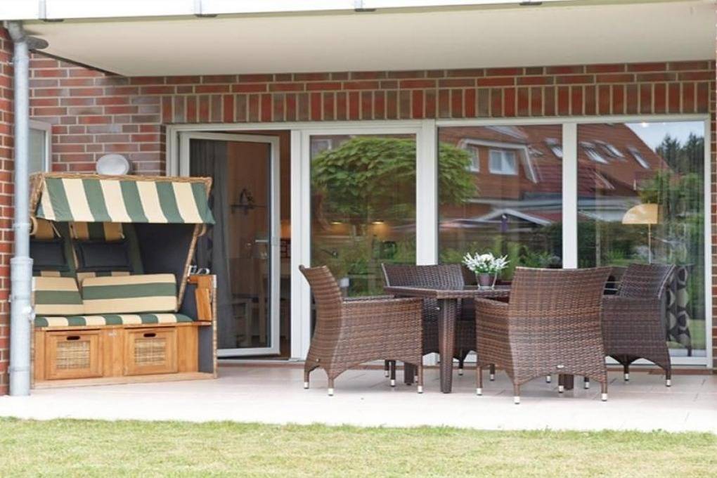Schöne, helle 2-Raum-Wohnung auf ca. 47m² bis 2 Pers., parterre mit großer Terrasse mit Strandkorb und Rasenanteil (süd), 1 Schlafzimmer mit Doppelbett, Wohn-/Schlafzimmer mit Schlafcouch, 2xSAT-TV, W-LAN kostenlos, vollständige Küchenzeile mit Geschirrspüler, Mikrowelle, Backofen, Gefrierfach, Dusche/Wc, alle Räume mit Rollladen, Nichtraucher, Pkw-Stellplatz #2, keine Haustiere gestattet.