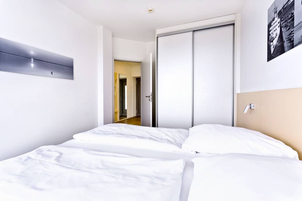 Blick auf die "Alte Liebe"! Schöne 2-Raum-Wohnung in der 2.Etage mit großem Balkon (ost). Die vollständige Küchenzeile mit Mikro, Back., Geschirrsp. etc. garantiert höchsten Komfort. 3D-SAT-TV, Blue-Ray-DVD, Kompaktanlage, kostenloses W-Lan-Internet, separates Schlafzimmer mit Außenjalousien und hochwertigem Doppelbett, allergikerfreundlich, ebenerdige Dusche/WC, Föhn, freie Saunanutzung, breiter Tiefgaragenstellplatz, keine Haustiere und natürlich Nichtraucher.