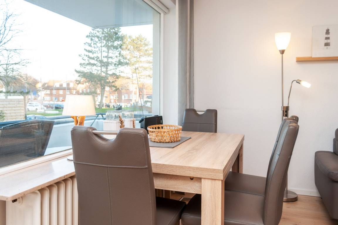 Das Apartment 112 ist ein 2-Raum-Apartment im 1. Obergeschoss für bis zu 4 Personen mit 50 qm. Der Ostbalkon mit Meerblick bietet Ihnen vormittags Sonne und nachmittags Schatten.
