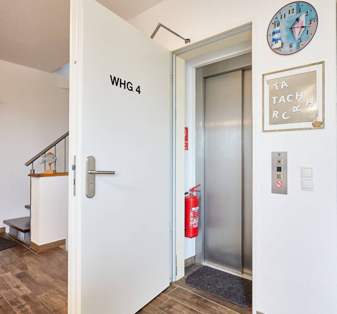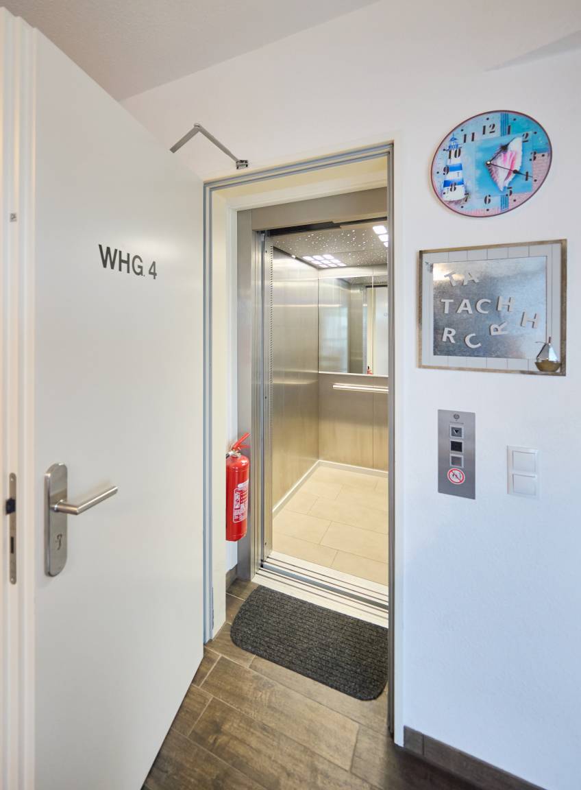 Die Wohnung ist barrierefrei erreichbar, da ein Fahrstuhl Sie direkt bis zur Eingangstür bringt. Alternativ steht auch ein Treppenhaus zur Verfügung. Für Ihren Pkw ist ein Garagenstellplatz (Nr. 4) in der Doppelgarage des Grundstücks reserviert.