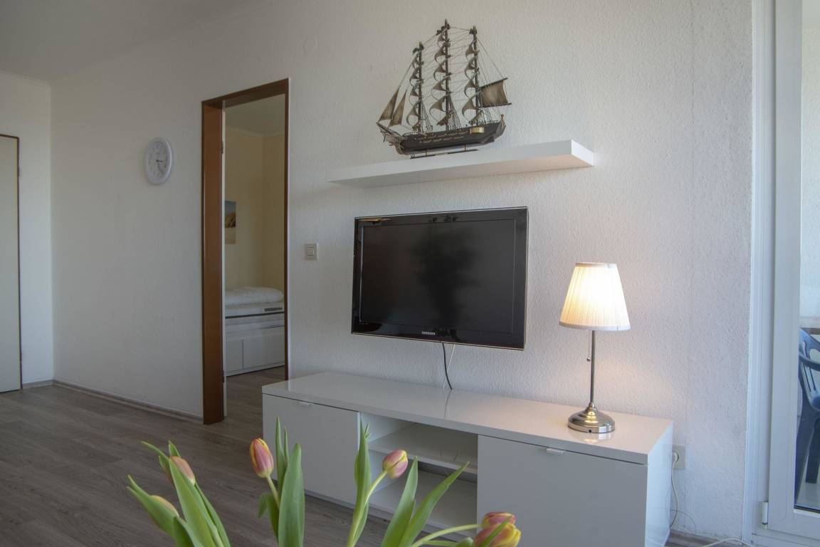 Die Ferienwohnung Frische Brise FeWo 15.09 im 15. Stock bietet auf 43 m² Platz für bis zu fünf Personen. Sie verfügt über ein separates Schlafzimmer und einen kombinierten Wohn- und Essbereich, der mit einem gemütlichen Sofa, einem Essbereich und einem modernen TV ausgestattet ist. Die offene Küche ermöglicht eine mühelose Selbstversorgung mit einem 4-Platten-Herd, Backofen, Mikrowelle, Kühlschrank mit Gefrierfach sowie Geschirr und Küchenutensilien. Das Badezimmer bietet eine Dusche, Waschtisch und WC. Ein Aufzug erleichtert den Zugang zur Wohnung und ist besonders vorteilhaft für Gäste mit eingeschränkter Mobilität. Gemeinschaftliche Einrichtungen wie ein Indoor-Pool, eine Sauna, ein Tennisplatz und Waschmaschinen sind ebenfalls verfügbar. Dieser lichtdurchflutete Raum mit traumhaftem Meerblick ist ideal für Erholungssuchende und Aktivurlauber gleichermaßen.