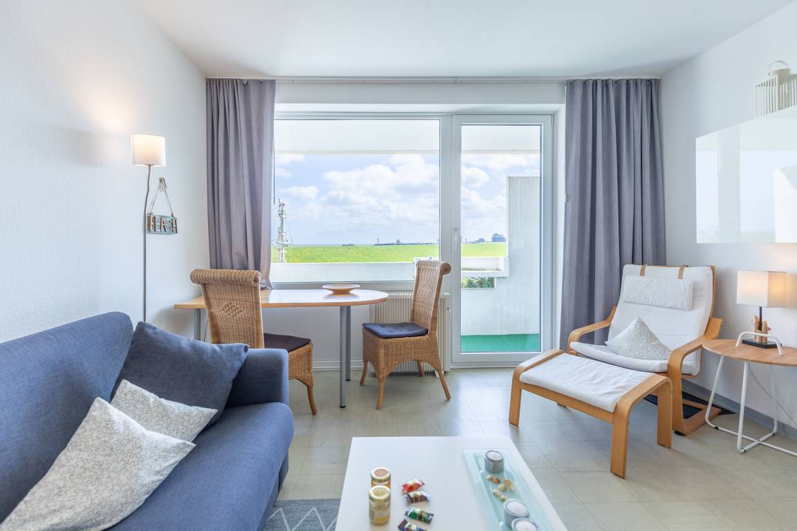 Schon beim allmorgendlichen Frühstück genießen Sie den traumhaften Blick auf den Weltschifffahrtsweg, die Badebucht und den Hafen. Sowohl der Wohnbereich, als auch der Balkon bieten einen traumhaften Ausblick auf die vorbeifahrenden Krabbenkutter, Frachter und Kreuzfahrtschiffe, die zum Greifen nah scheinen. Bei Schmuddelwetter locken Sofa, Relaxsessel sowie das hauseigene Schwimmbad und die Sauna. Urlaub für jede Wetter- und Lebenslage.