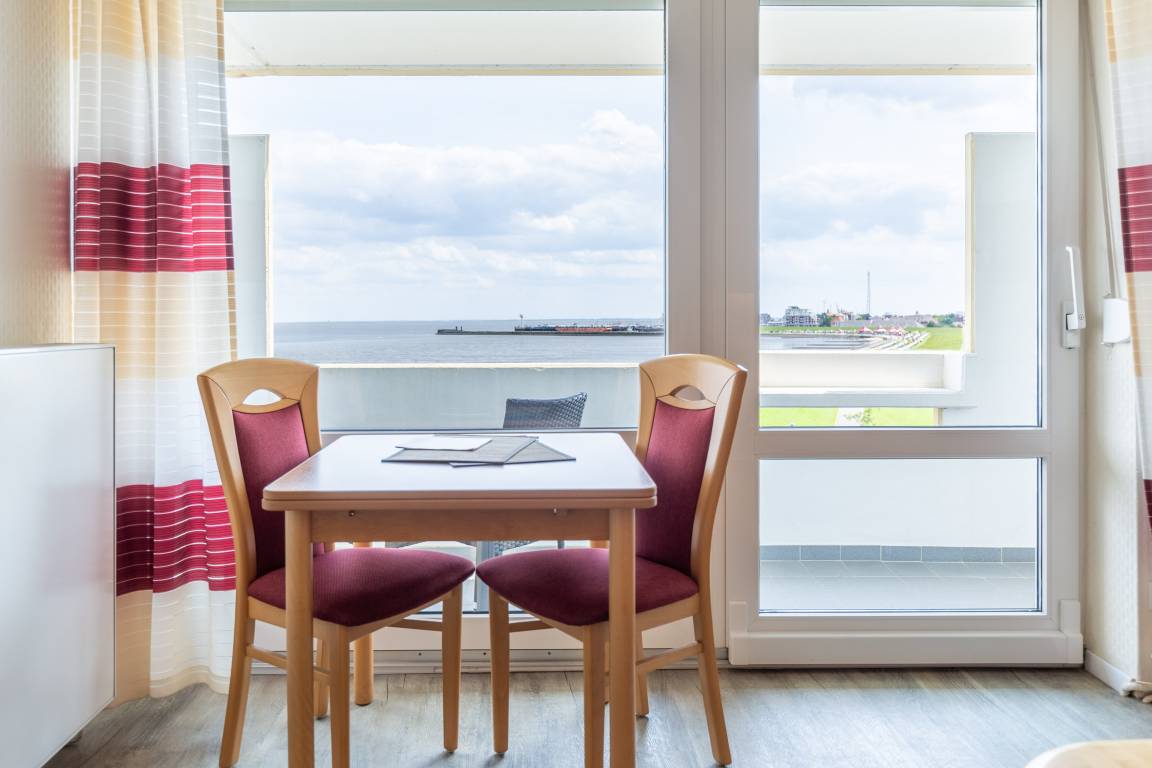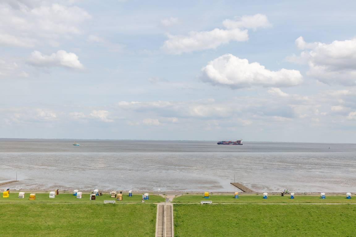 Ankommen und sich wohlfühlen. Ferienwohnung Nautic 609 bietet einen atemberaubenden Meerblick auf den Weltschifffahrtsweg. Vom Esstisch am Fenster genießen Sie schon beim Frühstück den atemberaubenden Ausblick auf die vorbeifahrenden Krabbenkutter, Segelschiffe und Luxus Liner, die zum Greifen nah scheinen.