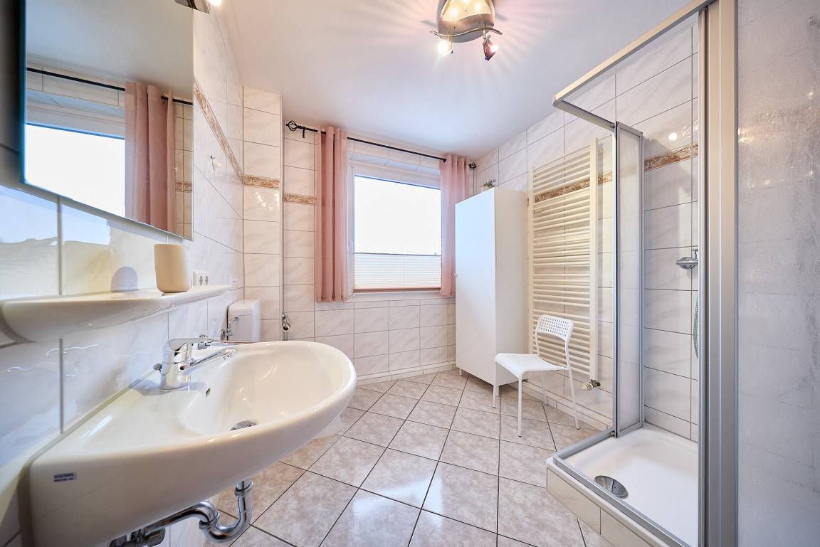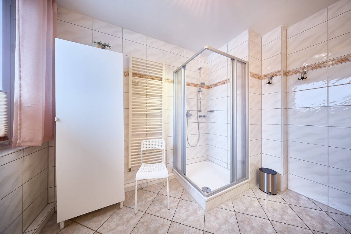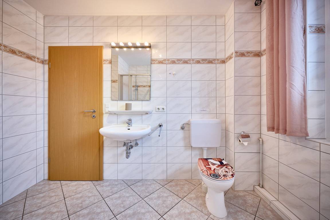 Das Badezimmer verfügt über Dusche und WC und ist praktisch gestaltet.