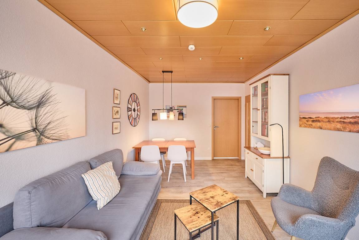 Der Wohnraum ist funktional geschnitten und eignet sich gut für ruhige Urlaubstage mitten im Ortskern.