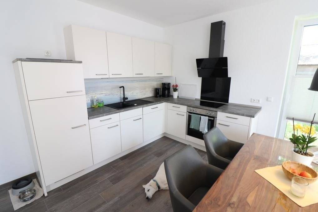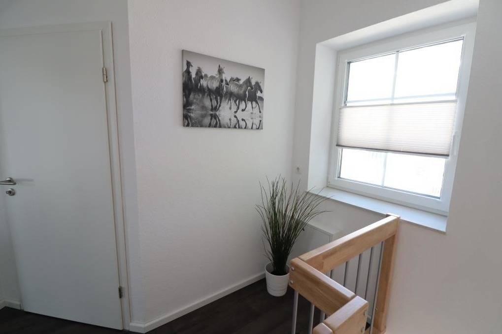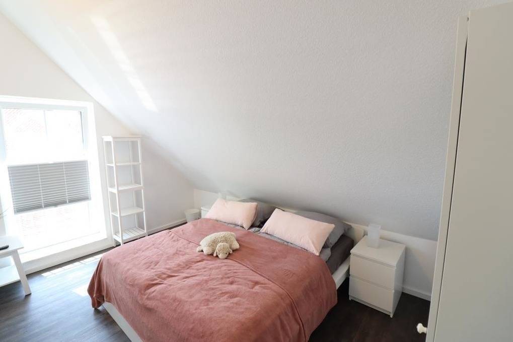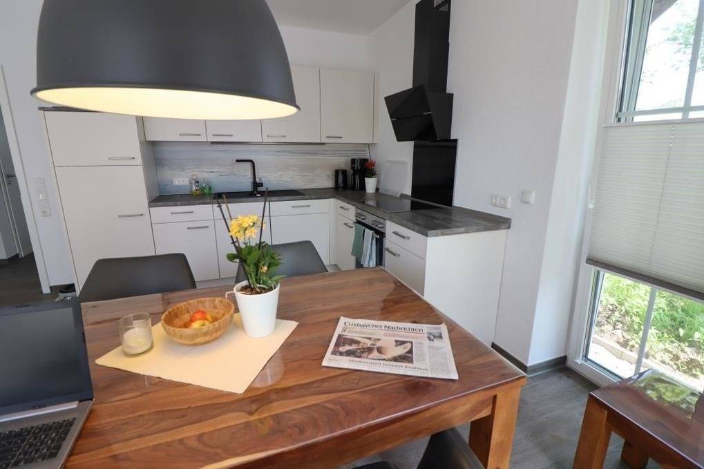 Das Ferienhaus im Angerdorf in Holte-Spangen bietet eine gemütliche und moderne Ausstattung für einen erholsamen Aufenthalt. Im Erdgeschoss befindet sich ein einladender Wohnraum mit Zugang zur Terrasse und dem großen Garten. Die hochwertige Küchenzeile und der großzügige Esstisch ermöglichen ein geselliges Kochen. Ein Gäste-WC ist ebenfalls im Erdgeschoss vorhanden. Ein Abstellraum mit kostenlos nutzbarer Waschmaschine und Trockner ergänzt die praktische Ausstattung. Im Obergeschoss warten zwei Schlafräume auf die Gäste, ausgestattet mit einem Doppelbett und einem französischen Bett (1,40 x 2m). Zudem steht ein modernes Badezimmer mit Dusche und WC zur Verfügung. Fliegengitter an allen Fenstern sorgen für ein angenehmes Raumklima. Kostenloses WLAN ist verfügbar und zwei Parkplätze stehen bereit. Eine kleine Erstausstattung für den ersten Tag ist inklusive.