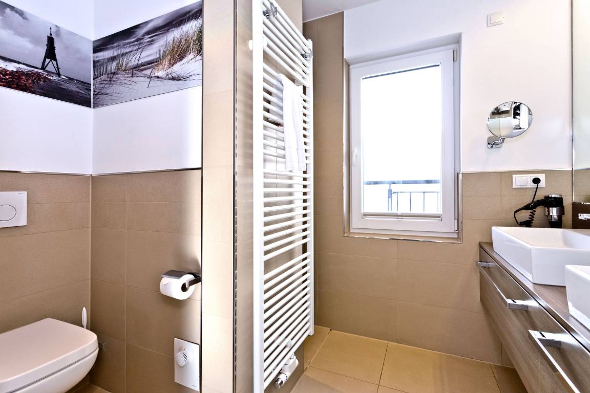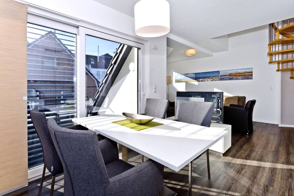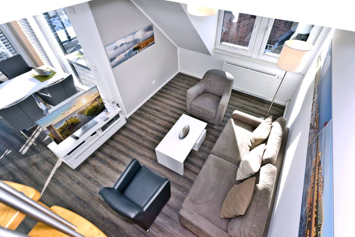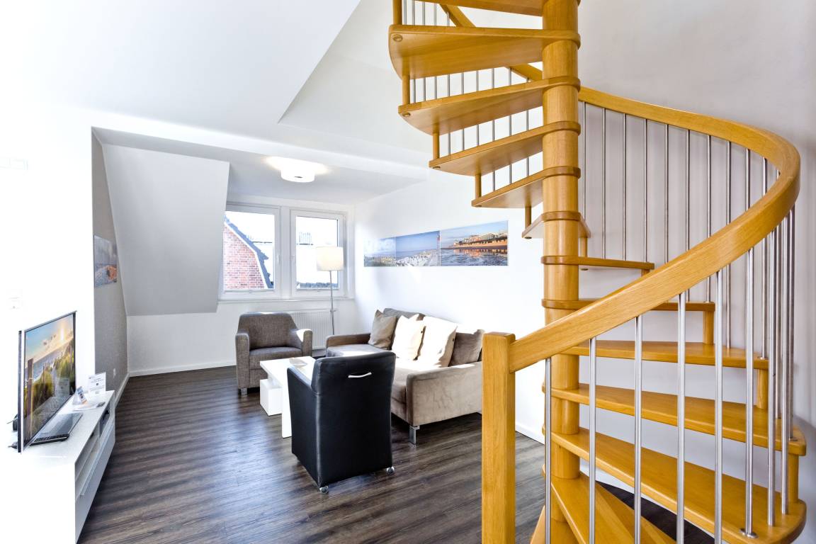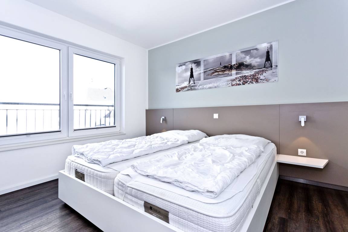 Sehr schöne, moderne 3-Raum-Wohnung bis 4 Pers über zwei Etagen (67m²), 2.Etage, 2 Schlafzimmer mit Doppelbetten, Wohnzimmer mit großer Küchenzeile (Back., Mikrow., Geschirrspüler), 2x Du/WC, 2xSAT-TV, Blue-Ray, CD-Radio, W-LAN kostenlos, großer Westbalkon mit Balkonmöbeln und Sonnenschirm (saisonabhängig), reservierter Pkw-Stellplatz vor dem Haus, keine Haustiere erlaubt, Nichtraucher.