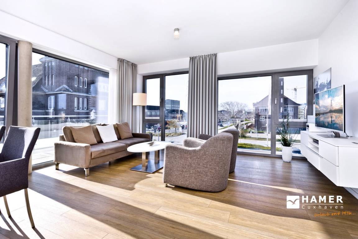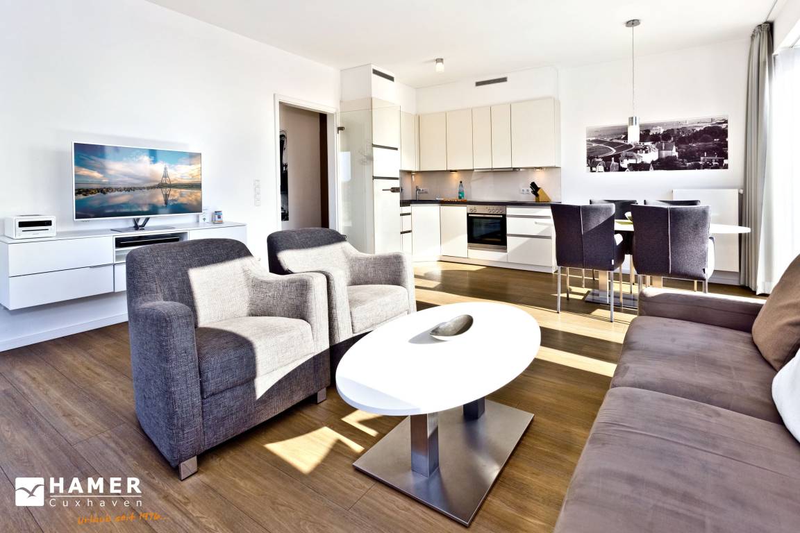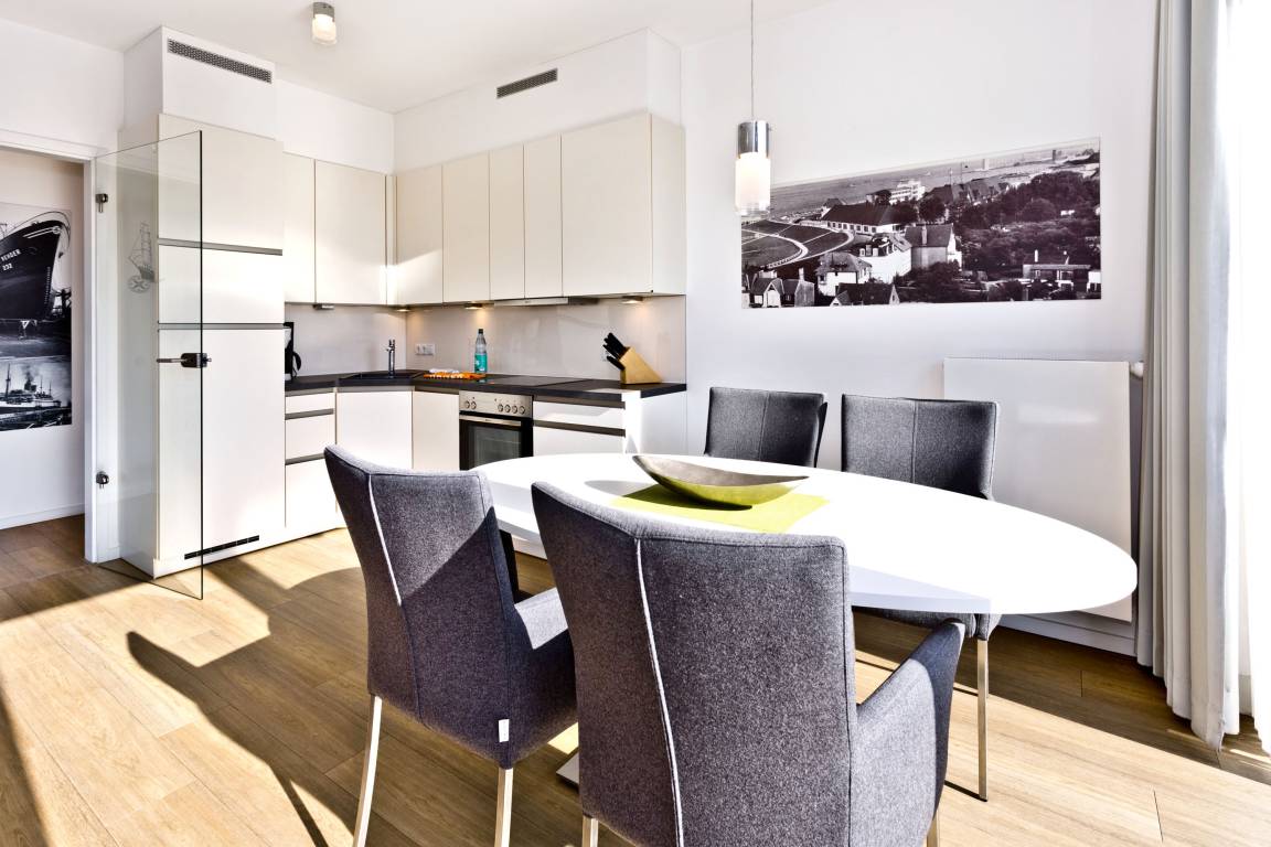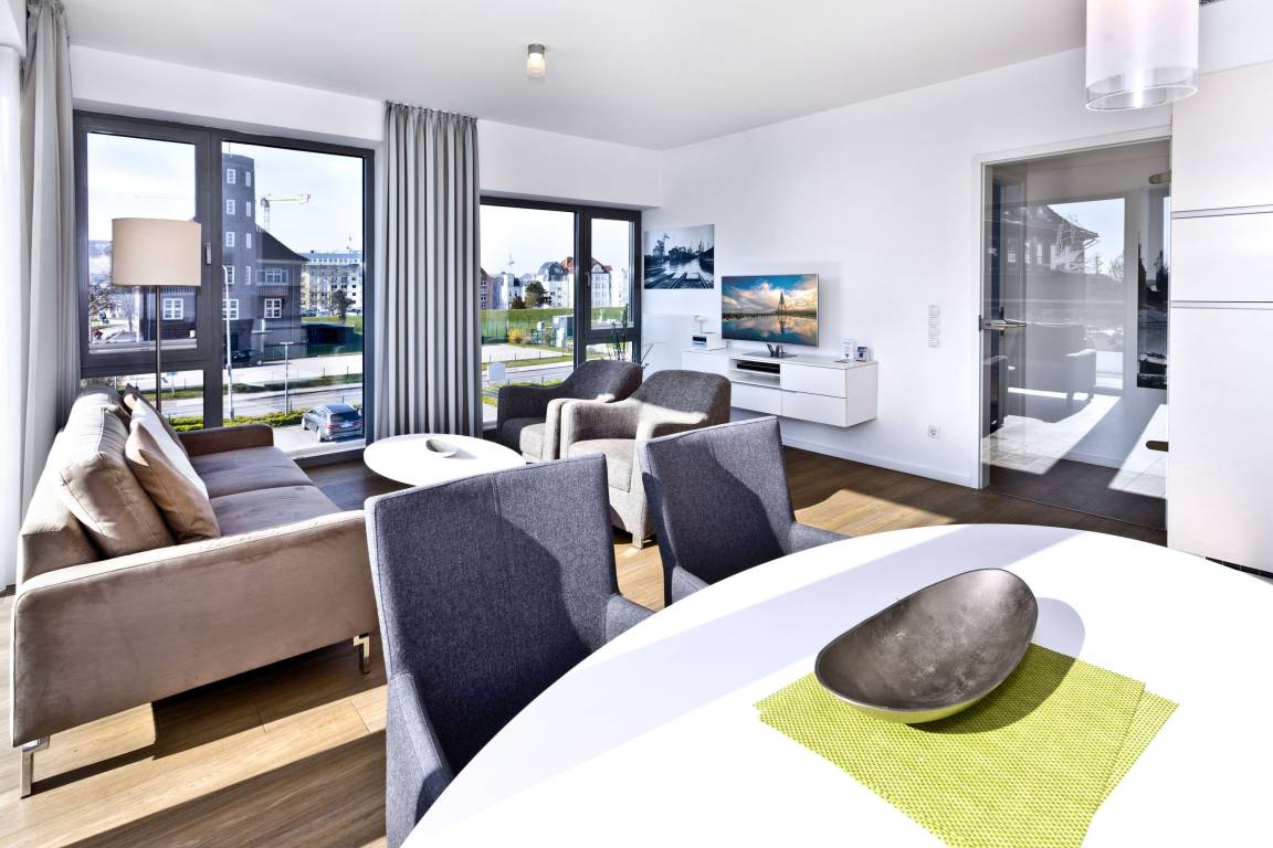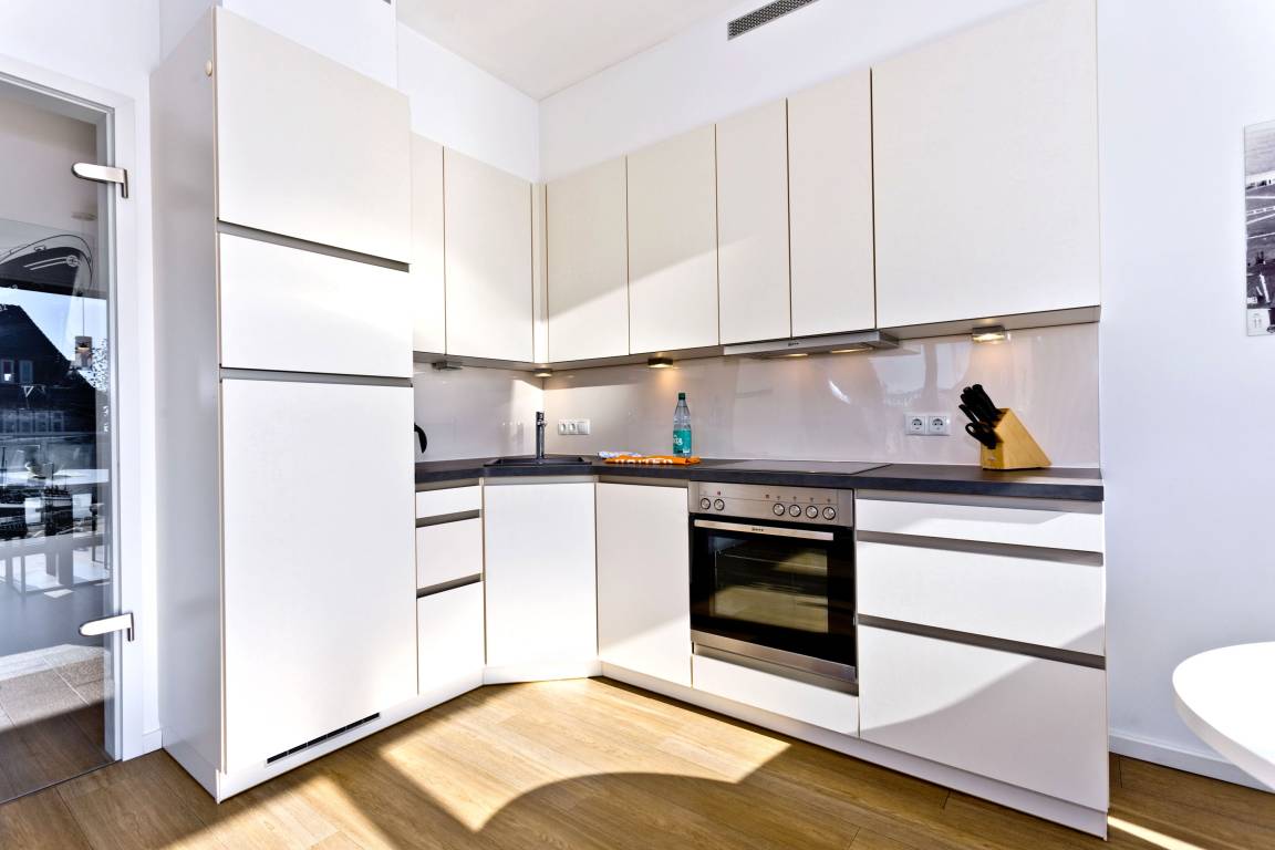 Lichtdurchflutete 2-Raum-Ferienwohnung in Südlage und Seesicht. Großer Balkon mit Seesicht (ost/süd). Vollständige Küchenzeile mit Mikrow., Backo., Geschirrspüler etc., SAT-TV, Blue-Ray-DVD, CD-Kompaktanlage, USB-Steckdosen, kostenloses W-Lan-Internet, separates Schlafzimmer mit Außenjalousien, allergikerfreundlich, ebenerdige Dusche/WC, Föhn, freie Saunanutzung, reservierter Außenstellplatz am Haus, keine Haustiere und natürlich Nichtraucher.