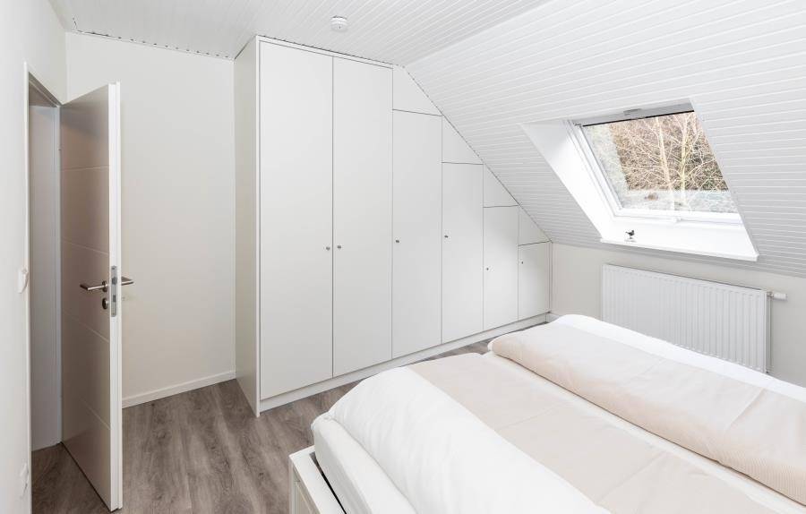 Die Wohnung verfügt über zwei separate Schlafbereiche, beide mit passgenauen Einbaukleiderschränken ausgestattet.