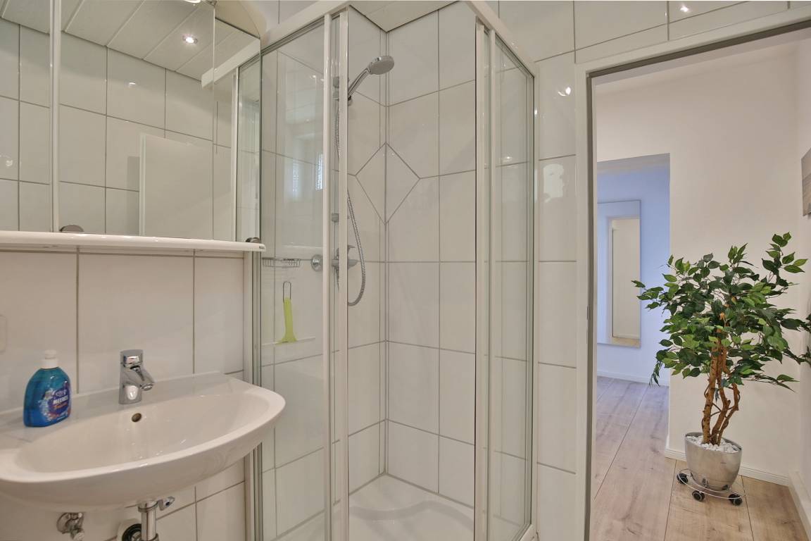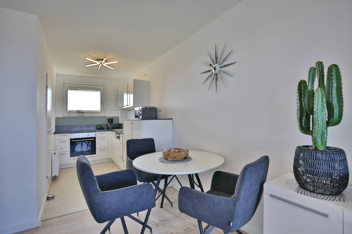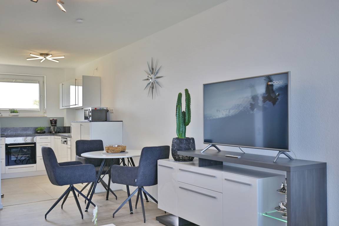 Genießen Sie die schönsten Tage des Jahres in unserer 59 m² Ferienwohnung. Optimal für 2 bis 3 Personen. Nach einem erlebnisreichen Tag können Sie den Abend auf dem bequemen Sofa ausklingen lassen. Der Flachbildfernseher sorgt dafür, dass Sie auch im Urlaub nicht auf Ihre Lieblingsserie verzichten müssen. Die moderne und offen gehaltene Küche ist mit einem Backofen und einem Geschirrspüler sowie einem Kühlschrank mit Gefrierfach ausgestattet.