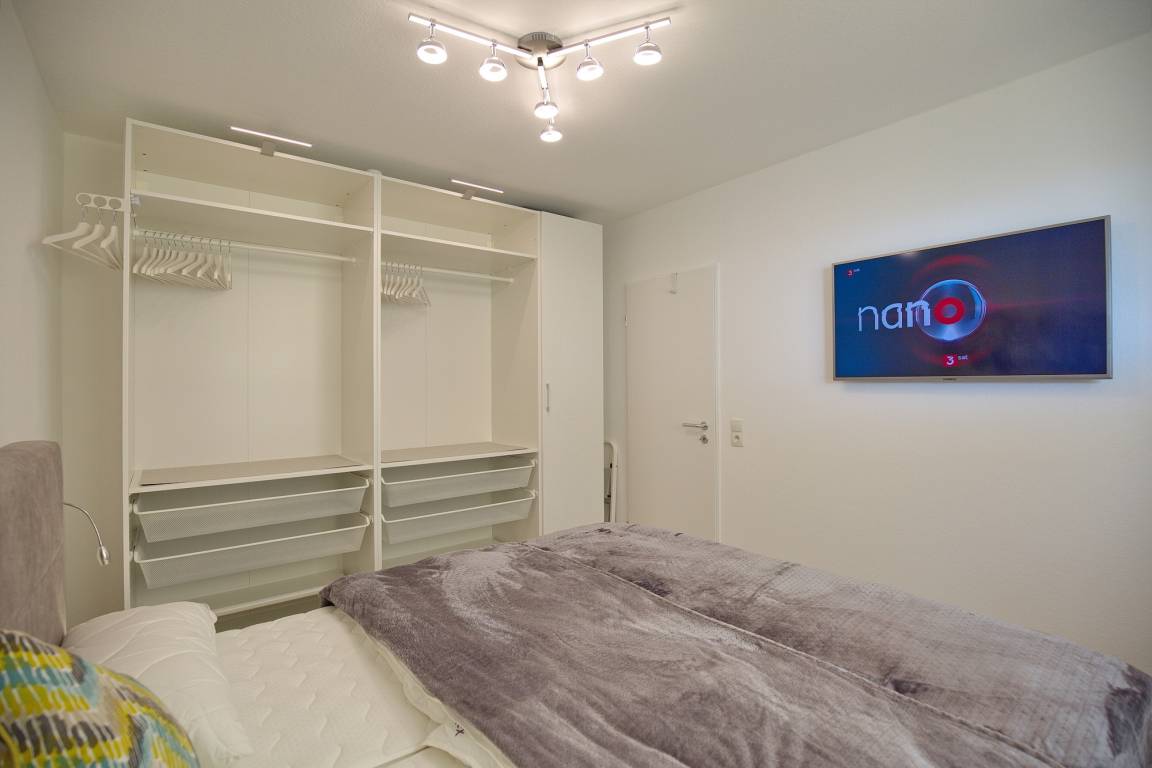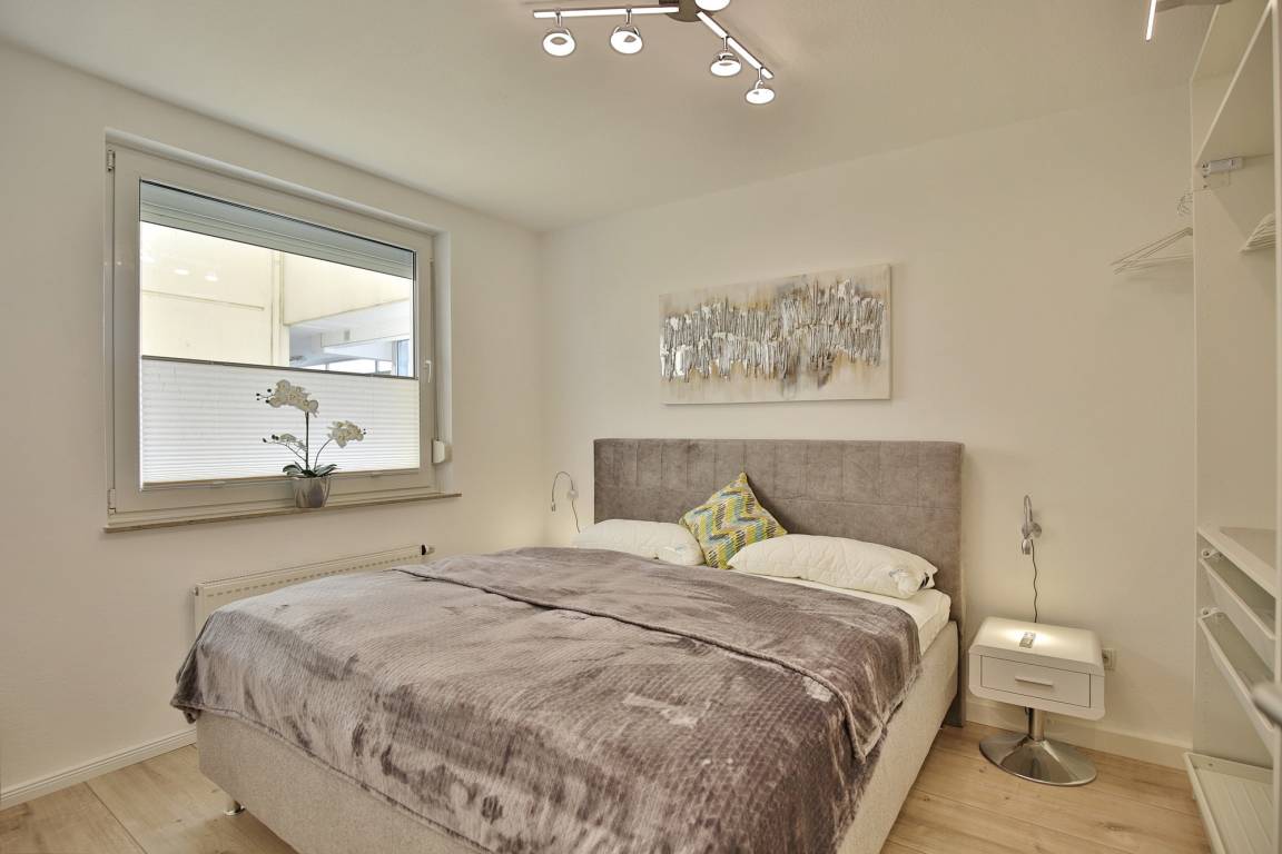 Erholsamen Schlaf finden Sie im separaten Schlafzimmer mit komfortablem Doppelbett. Die Außenjalousie im separaten Schlafzimmer gewährleistet, dass Sie nicht von der Morgensonne geweckt werden. Darüber hinaus ist die Wohnung mit einem Badezimmer mit Dusche, WC, Fön und Fenster zum Belüften ausgestattet. Ferienwohnung Nautic 614 ist ein KFZ-Stellplatz fest zugeordnet.