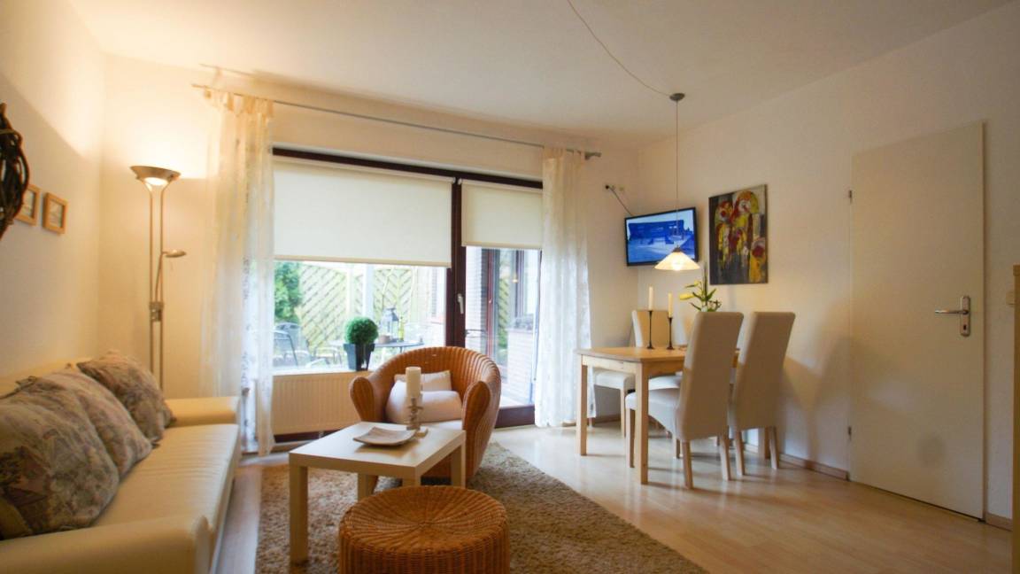 Die helle Ferienwohnung an der Nordsee bietet Platz für bis zu 4 Personen, eine gemütliche Terrasse, moderne Ausstattung und Zugang zu einem eingezäunten Garten – ideal für unvergessliche Urlaubsmomente.