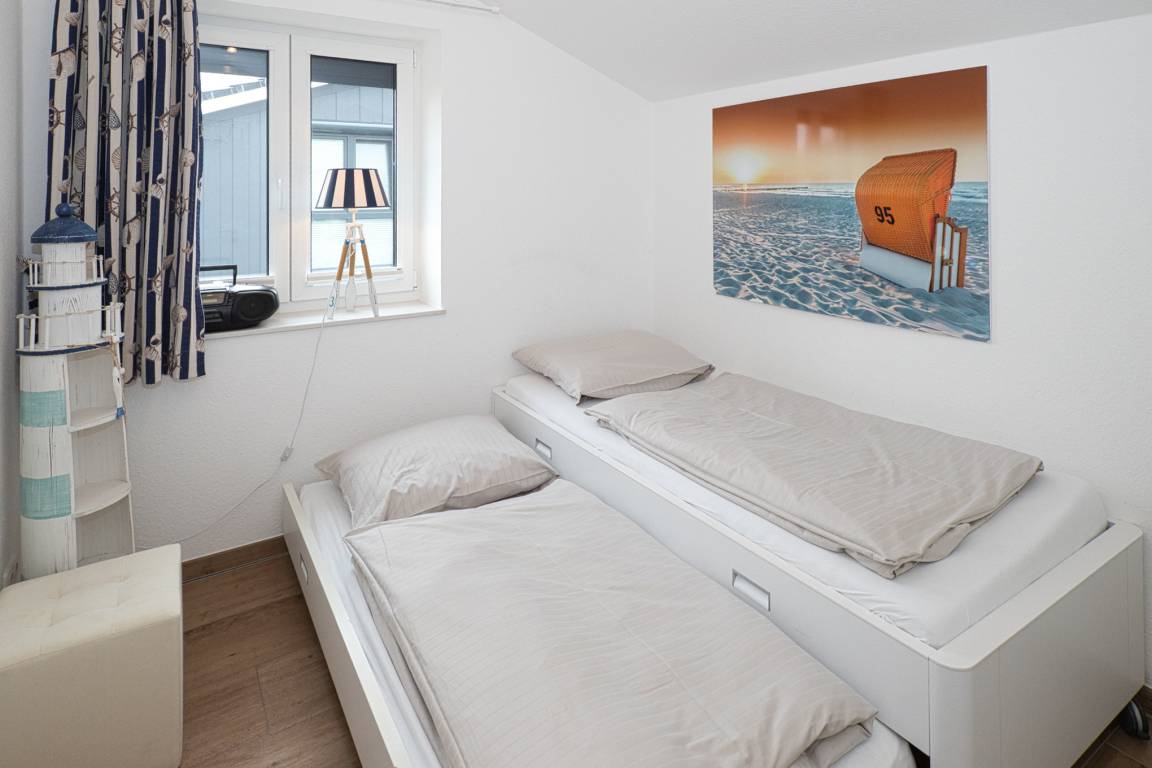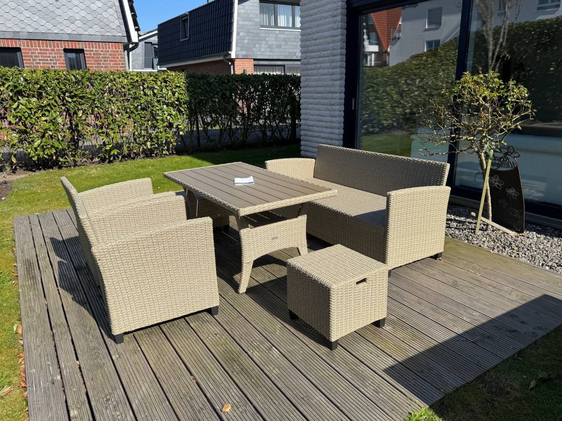 Ein wunderschönes Ferienhaus im Ferienhausgebiet Satelsrönne. Hus Achtern Diek. Für bis zu 6 Personen mit Sauna und Kamin. Das moderne, sehr gemütlich ausgestattete Nichtraucherhaus befindet sich in ruhiger Lage im Ferienhausgebiet von Duhnen. Zum Strand sind es ca. 4 Gehminuten und zum Ahoi-Bad ca. 6 Gehminuten. Das Duhner Zentrum erreichen Sie wenige Schritte später. Die Wohnfläche von ca. 88 qm verteilt sich auf 2 Etagen. Von dem im Erdgeschoss gelegenen lichtdurchfluteten Wohnbereich mit offener Küchenzeile kommen Sie auf die sonnige Terrasse. Neben dem Duschbad mit WC und Sauna befindet sich im Erdgeschoss noch ein HWR mit einem Waschtrockner. Ein weiteres Duschbad mit WC liegt direkt im Obergeschoss auf der selbigen Ebene wie die 3 Schlafzimmer. Von einem der Schlafzimmer schauen Sie durch die Häuser am Dünenweg, sogar bis auf das Meer und haben einen eigenen, begehbaren Kleiderschrank zur Verfügung. Wir freuen uns auf Sie.