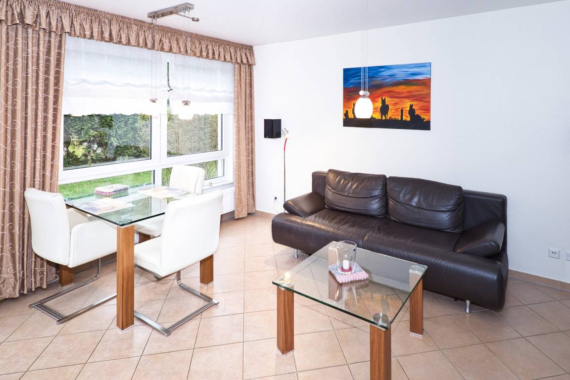 Die Ferienwohnung in Duhnen bietet Platz für bis zu 2 Personen und ist modern und stilvoll eingerichtet. Mit einer Größe von 42m² im Erdgeschoss und diversen Sonderausstattungsmerkmalen verspricht sie einen erholsamen Urlaub. Zur Ausstattung gehören ein Parkplatz, TV in Wohn- und Schlafzimmer, Fußbodenheizung, eine Terrasse mit Süd-West Ausrichtung, elektrische Rollos in allen Räumen und eine tolle Einbauküche, die auch im Urlaub Freude beim Zubereiten von Speisen bereitet. Die Wohnung ist allergikerfreundlich und komplett mit Feinsteinzeug gefliest. Im Wohn- und Essbereich sind die Sitzgelegenheiten mit Lederbezügen ausgestattet und im Schlafzimmer gibt es allergikerfreundliche Matratzen und Bettzeug. Bitte beachten Sie, dass Haustiere zwar gerne gesehen sind, jedoch nicht in die Wohnung mitgebracht werden dürfen.