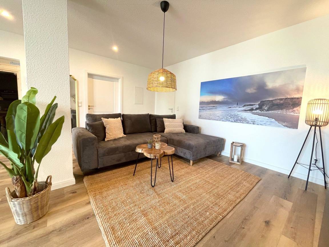 Diese exquisite Strandferienwohnung im Erdgeschoss bietet Platz für bis zu sechs Personen und kombiniert Luxus mit Komfort. Sie umfasst zwei gemütliche Schlafzimmer, ein komfortables Schlafsofa sowie zwei moderne Badezimmer, die einen angenehmen Aufenthalt garantieren. Die voll ausgestattete Küche ermöglicht es, kulinarische Köstlichkeiten zuzubereiten, während eine Spülmaschine für einfachen Abwasch sorgt. Besonders entspannend ist die private Sauna sowie die Whirlpool-Badewanne, die zur Erholung einladen. Für Wäscheangelegenheiten stehen Waschmaschinen und Trockner zur gemeinschaftlichen Nutzung im Haus bereit. In direkter Nähe befindet sich ein Bäcker, der saisonbedingt frische Brötchen anbietet. Diese Ferienwohnung verspricht ein stilvolles Ambiente und ist der ideale Rückzugsort für erholsame Urlaubstage.