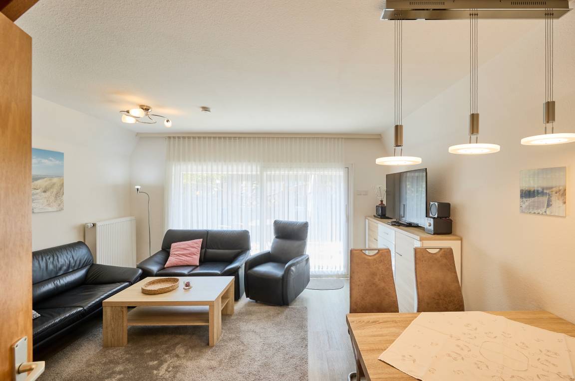 Willkommen im "Ferienhaus Am Ringwall 32 - Fritzi"! Hier erwartet Sie ein idyllisches Refugium für Ihren Nordseeurlaub. Auf großzügigen 54 m² bietet unser Ferienhaus Platz für bis zu 4 Personen und verfügt über 2 gemütliche Schlafzimmer sowie ein Duschbad. Im Wohnbereich erwartet Sie eine behagliche Atmosphäre, wo Sie in der Essecke Ihre Mahlzeiten genießen oder im komfortablen Sofabereich vor dem Fernseher entspannen können. Durch eine elegante Glasschiebetür gelangen Sie auf Ihre sonnige Westterrasse, wo Sie die frische Nordseeluft in vollen Zügen genießen können.
