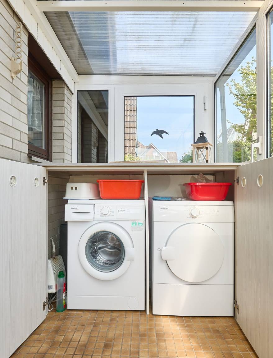 Im Erdgeschoss betreten Sie das Haus durch einen einladenden Windfang und finden eine gut ausgestattete Küche mit Geschirrspüler vor. Das angrenzende Duschbad bietet Ihnen Komfort und als besonderes Detail stehen Ihnen eine Waschmaschine und ein Trockner zur Verfügung – perfekt für einen unbeschwerten Aufenthalt.