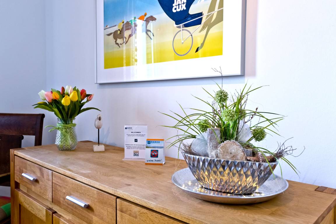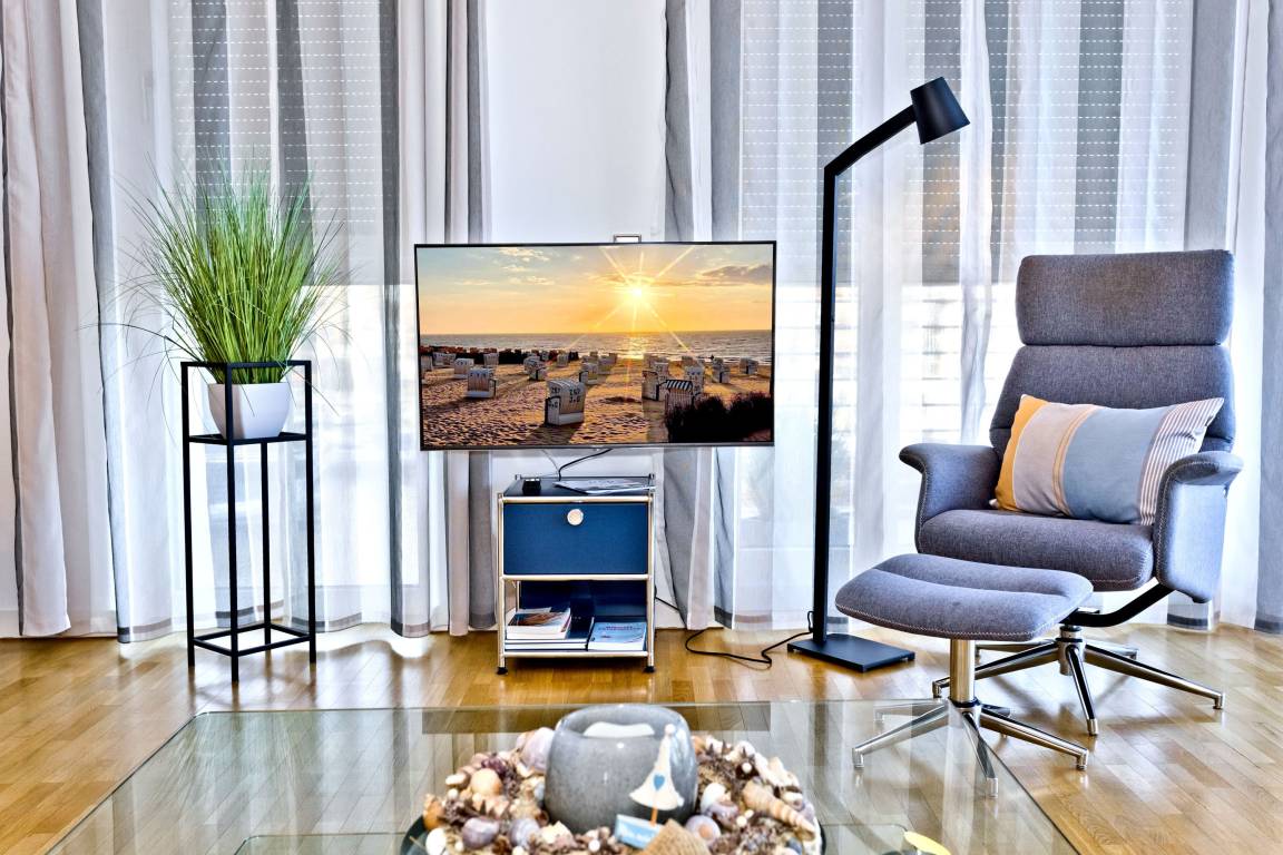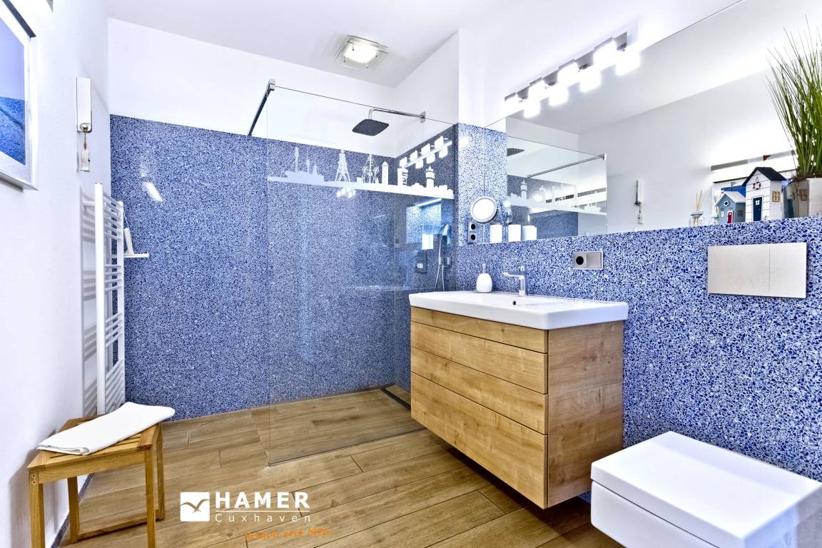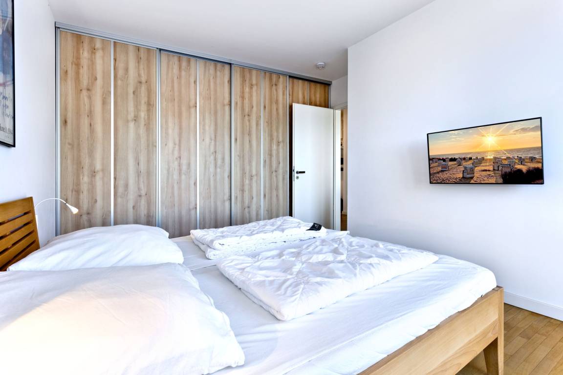 Direkt an der Marina Cuxhaven gelegene Neubauwohnung über ca. 80m². Tolle 2 Zi. Luxus-Wohnung in der 1. Etage mit Seesicht für max. 2Pers. ausgestattet, großzügiges Wohnzimmer mit großem Balkon (nord/west). Dieser Balkon wird in den Wintermonaten teilweise zur Loggia umgebaut. Vollständig ausgestattete Küchenzeile, 1 Schlafzimmer mit Doppelbetten, alle Räume sind über elektr. Außenjalousien zu verdunkeln (Wohnraum teilweise), 2xTV, Radio/CD, kostenloses W-Lan-Internet, ebenerdige Dusche/WC, reservierter Pkw-Stellplatz in der Tiefgarage #49, Nichtraucher und es sind keine Haustiere gestattet.
