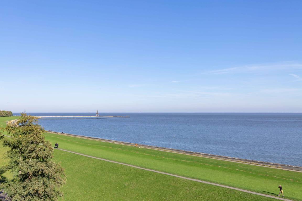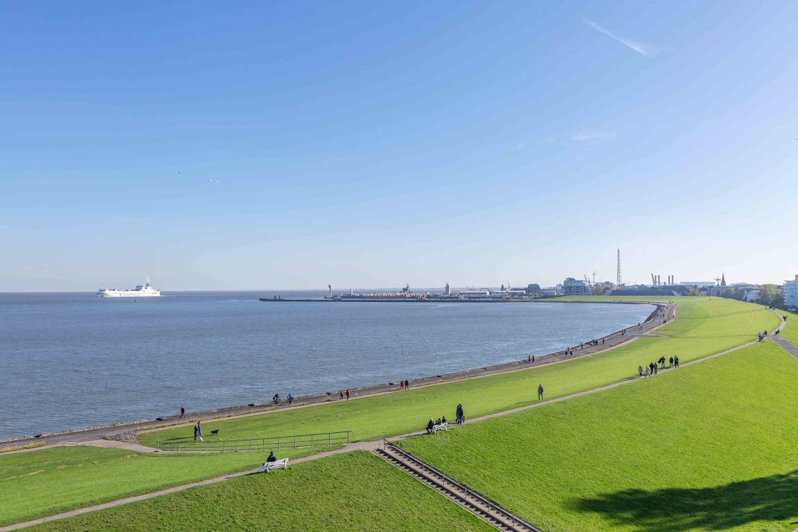 Unsere Perle und eine echte Rarität. Freuen Sie sich auf einen spektakulären Meerblick, der seines gleichen sucht. Aus der einmaligen Eck-Ferienwohnung haben einen unvergleichlichen Ausblick von der Kugelbake bis zur Alten Liebe. Auf 60 m² bietet die Ferienwohnung mit separatem Schlafzimmer viel Komfort für bis zu 3 Personen.