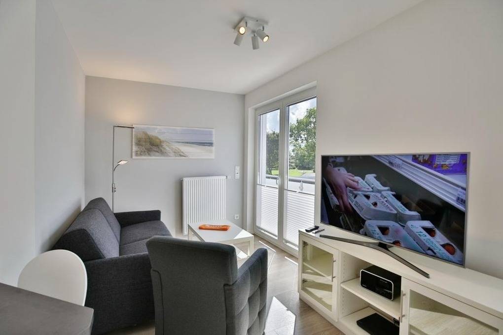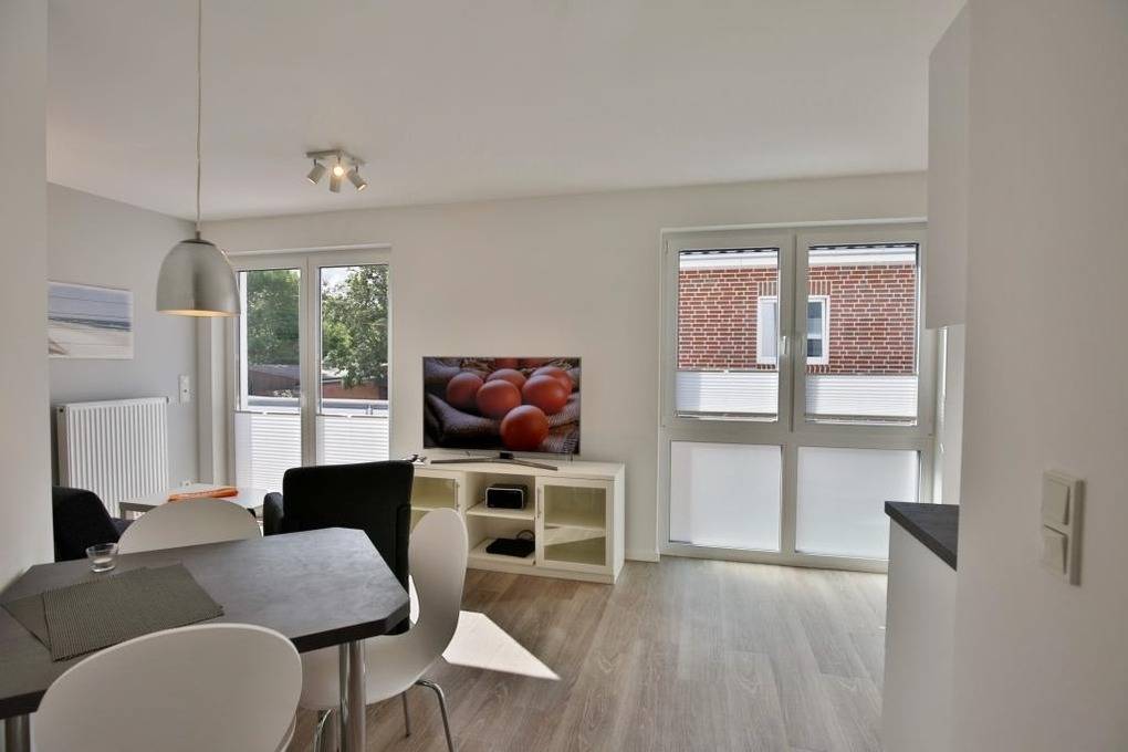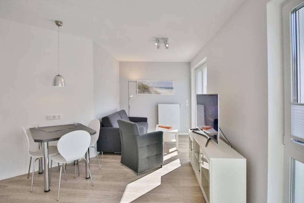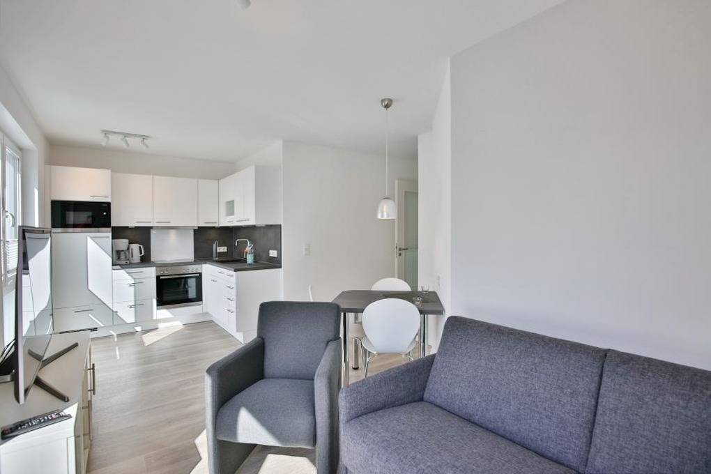 Sehr geschmackvolle Ferienwohnung auf ca. 47m² bis 3 Pers. ausgestattet im 1.OG mit Personenaufzug. Balkon (süd), 1 Schlafzimmer mit Doppelbett und TV,[nbsp][nbsp]Wohn-/Schlafzimmer mit hochwertiger Schlafcouch, vollständige Küchenzeile mit Geschirrspüler, Gefrierfach, Backofen und Mikrowelle, TV, Blue-Ray-DVD, kostenfreies W-LAN, ebenerdige Dusche/WC mit Föhn, alle Räume mit Rollladen, reservierter Pkw-Stellplatz #7 am Haus, Nichtraucherwohnung, keine Haustiere gestattet.