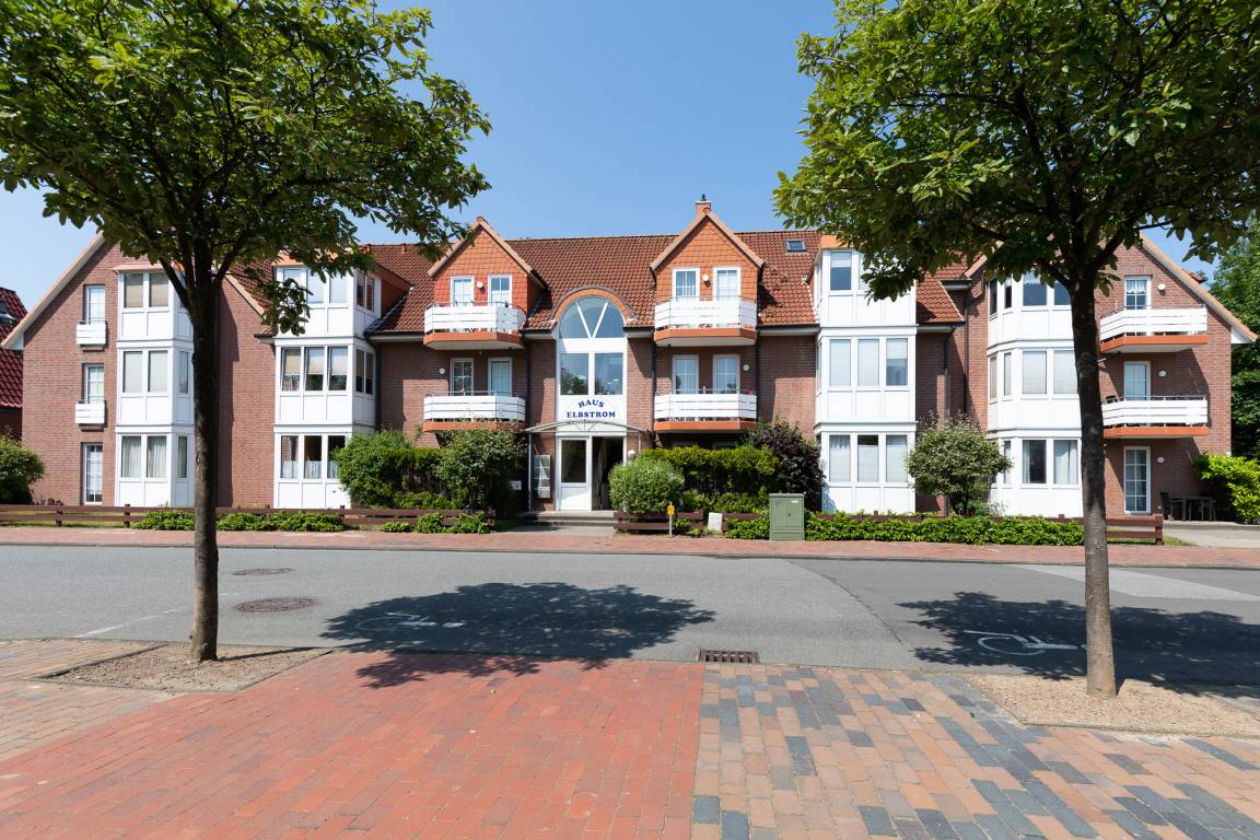 Die Ferienwohnung 8, im Haus Elbstrom befindet sich in einer verkehrsberuhigten Sackgasse. In nur 300 Metern erreichen Sie die Nordsee mit dem Sandstrand und die Kugelbake. Bäcker und verschiedene Restaurants sind Fußläufig zu erreichen.