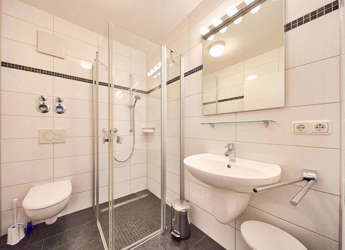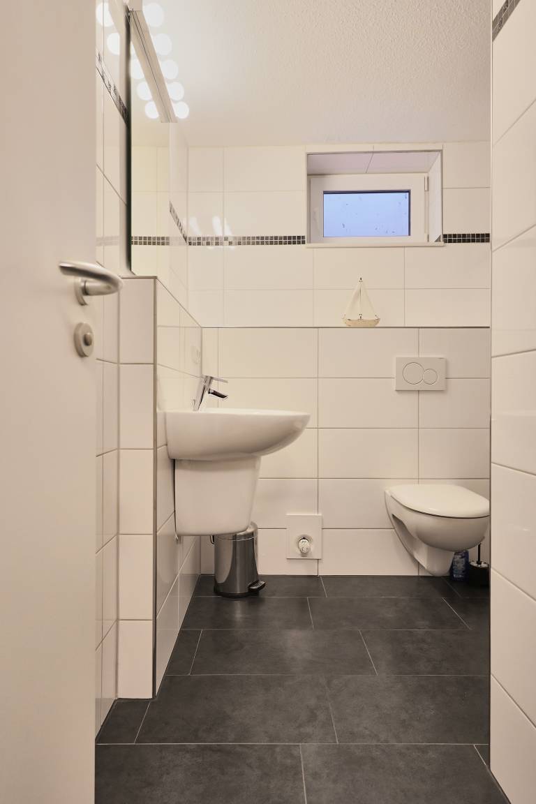 Für zusätzlichen Komfort stehen Ihnen zwei Duschbäder mit WC zur Verfügung – eines im Erdgeschoss und eines im Untergeschoss. Das Bad im Untergeschoss verfügt über ein Fenster für Tageslicht.