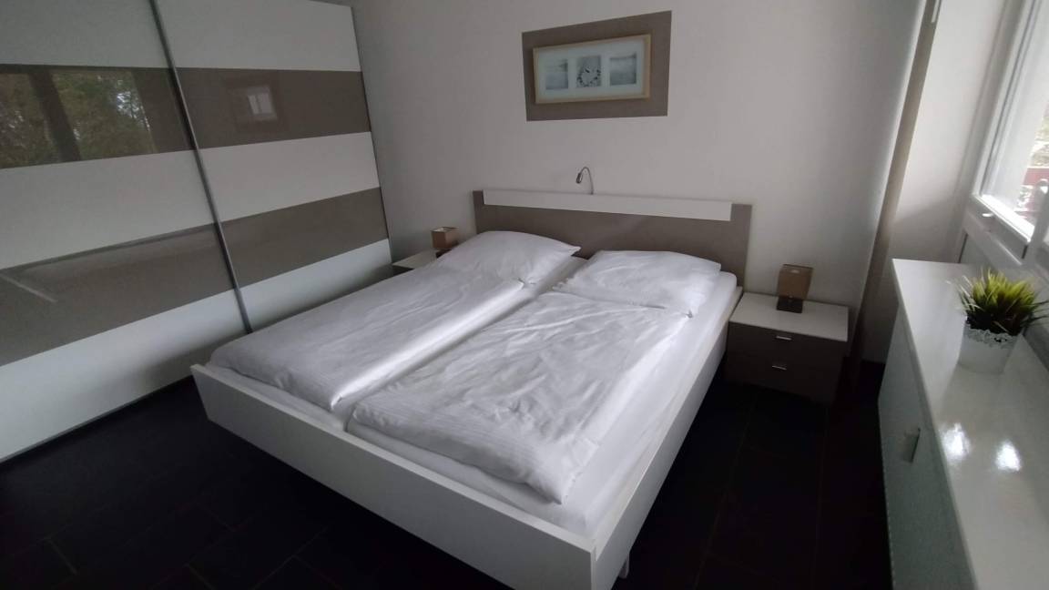 Das Appartement besteht aus einem Schlafzimmer mit Doppelbett, einem Wohnbereich mit ausziehbarem Schlafsofa, eine voll ausgestattete integrierte Küche, einem Badezimmer mit Dusche sowie WC.