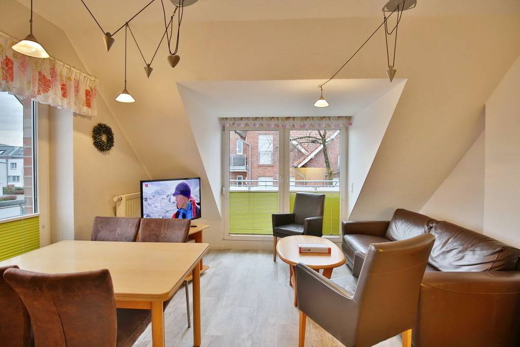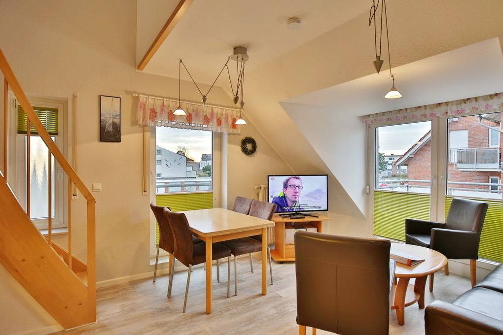 Maisonettewohnung über 2 Etagen für bis zu 6 Pers., Nichtraucher,2 Schlafzimmer mit Doppelbetten, 1 Wohn/Schlafraum mit Couchbett, großer Balkon (süd-west), 2 x Dusche/WC, Küchenzeile mit Mikrowelle, Geschirrspüler, Backofen, Ceran und Dunstabzug, 2 x Sat-TV, 2 x Radio/Cass/CD, W-Lan, Rollladen, PKW-Stellplatz #8, Nichtraucher, keine Haustiere