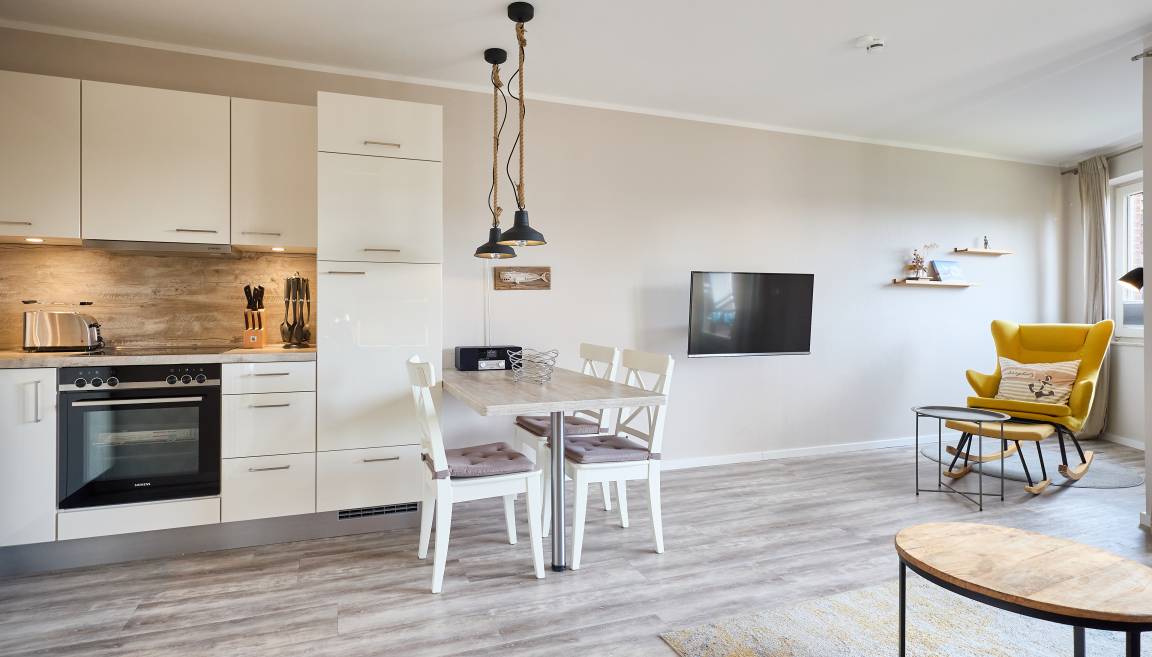 Gemütliche 2-Zimmer-Ferienwohnung in ruhiger und strandnaher Lage von Duhnen. Auf ca. 45 m² bietet die Wohnung im 1. Obergeschoss Platz für bis zu 2 Personen – ideal für Paare oder kleine Familien. Helles Wohnzimmer mit Smart-TV, Essbereich und Zugang zum sonnigen Süd-/West-Balkon. Separate, voll ausgestattete Küche mit Backofen, Mikrowelle, Geschirrspüler und Kaffeemaschine. Schlafzimmer mit Doppelbett, modernes Duschbad mit WC. WLAN inklusive, Tiefgaragenstellplatz, Fahrradkeller vorhanden. Haustierfrei, Nichtraucher. Inklusive frisch bezogener Betten und Starterpaket. Nur wenige Gehminuten zum Strand und zur Promenade – ideal für erholsame Tage an der Nordsee.