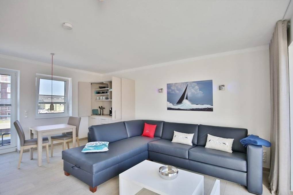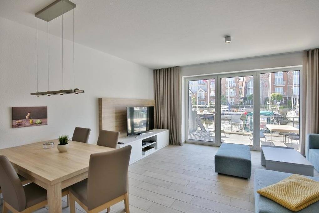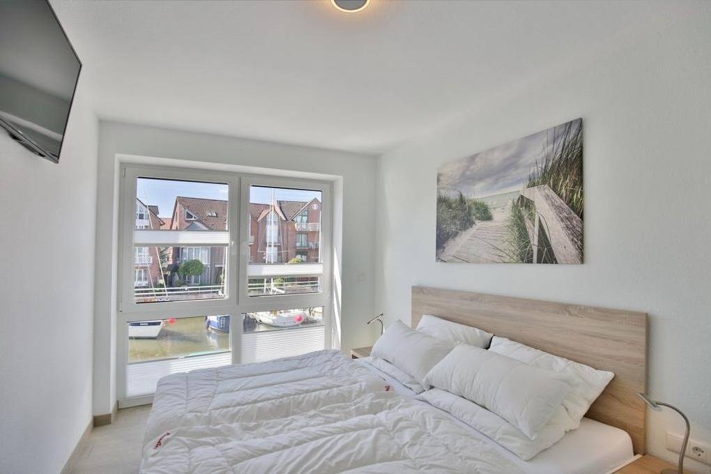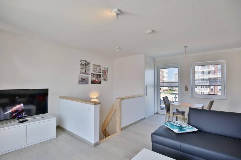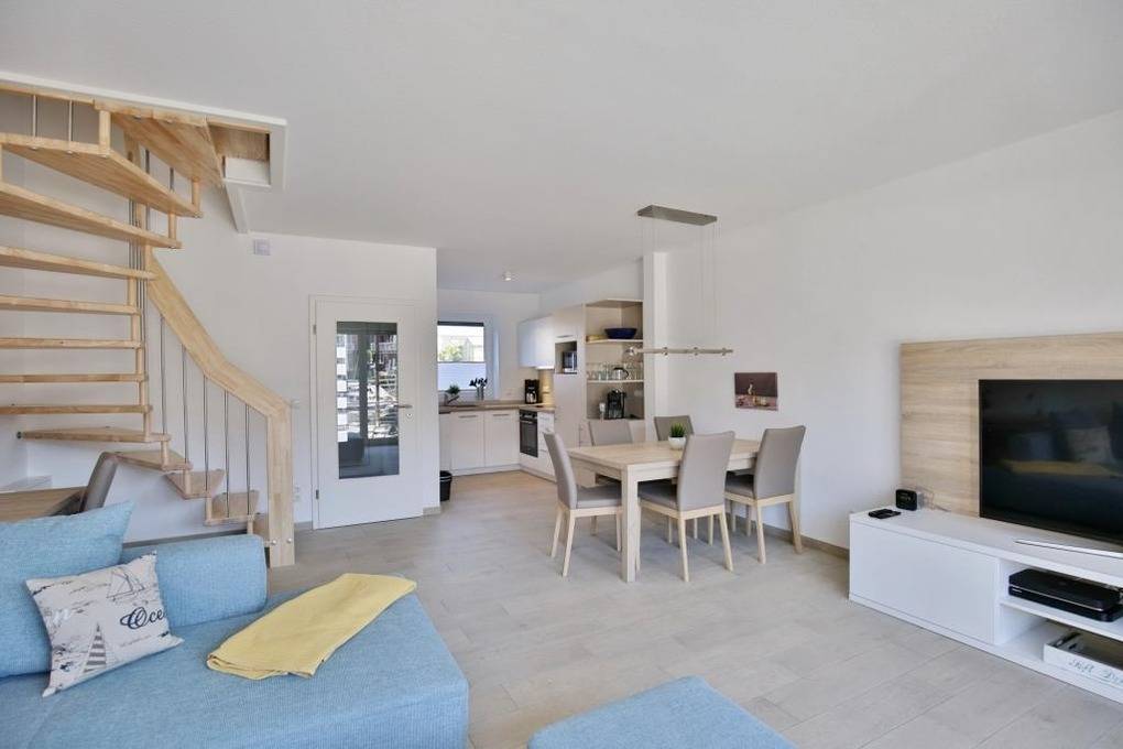 Attraktives, modernes Stadthaus im Yachthafen für bis zu 6 Pers. auf 3 Etagen mit absoluter Vollausstattung. Großzügiges Wohnzimmer mit offener Küchenzeile (Backofen, Geschirrspüler, Waschmaschine etc.), große Terrasse (west) mit Blick in die City Marina, Kabel-TV, Gäste/WC. 1.OG: 2 komfortable Schlafzimmer mit Doppelbetten jeweils mit TV, teilweise Insektenschutz an den Fenstern, 2x Du/WC, große Sauna zur freien Nutzung. 2.OG: Großzügige Lounge mit sehr hochwertigem Schlafsofa, TV, zusätzlich Pantry-Küche mit Vollausstattung (Kühlschrank, Geschirrspüler, Herd, Pad-Kaffeemaschine) große Dachterrasse (west) [&] Balkon (ost). Kostenfreies W-Lan-Internet im gesamten Haus, eigener Fahrradschuppen (eBike Lademöglichkeit), 1 PKW-Stellplatz am Haus und ein zusätzlicher Stellplatz (#13) in ca. 150m, keine Haustiere gestattet, Nichtraucher.