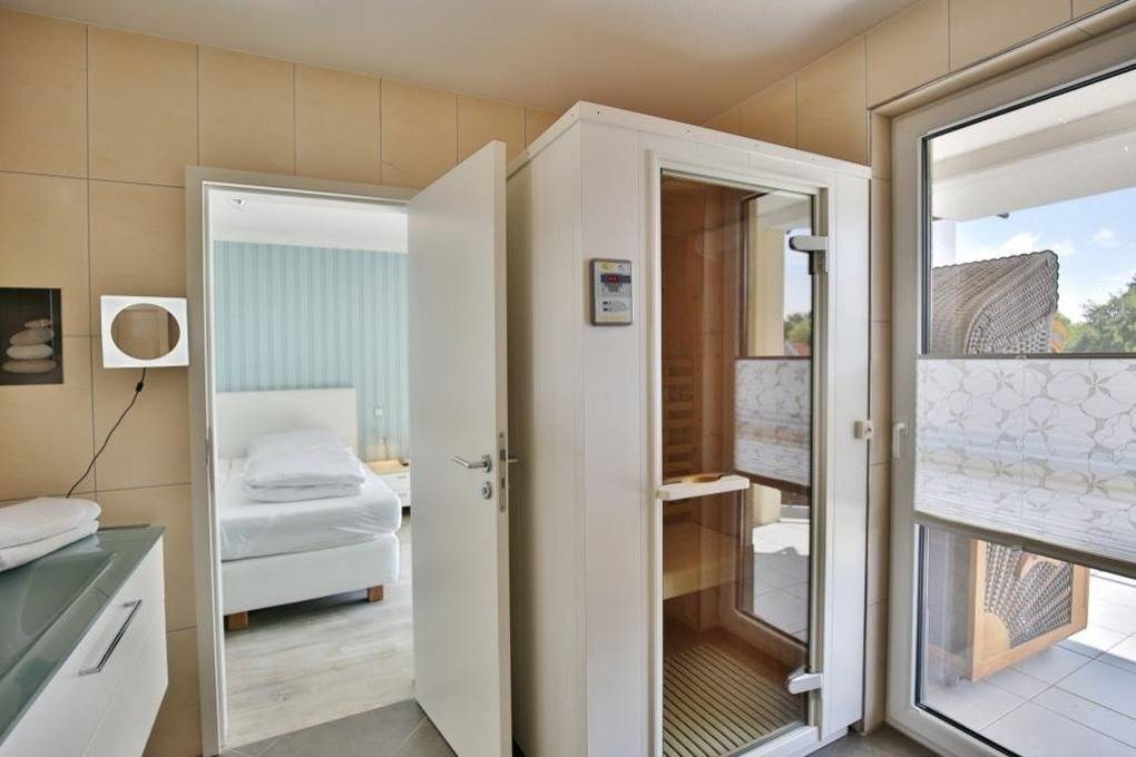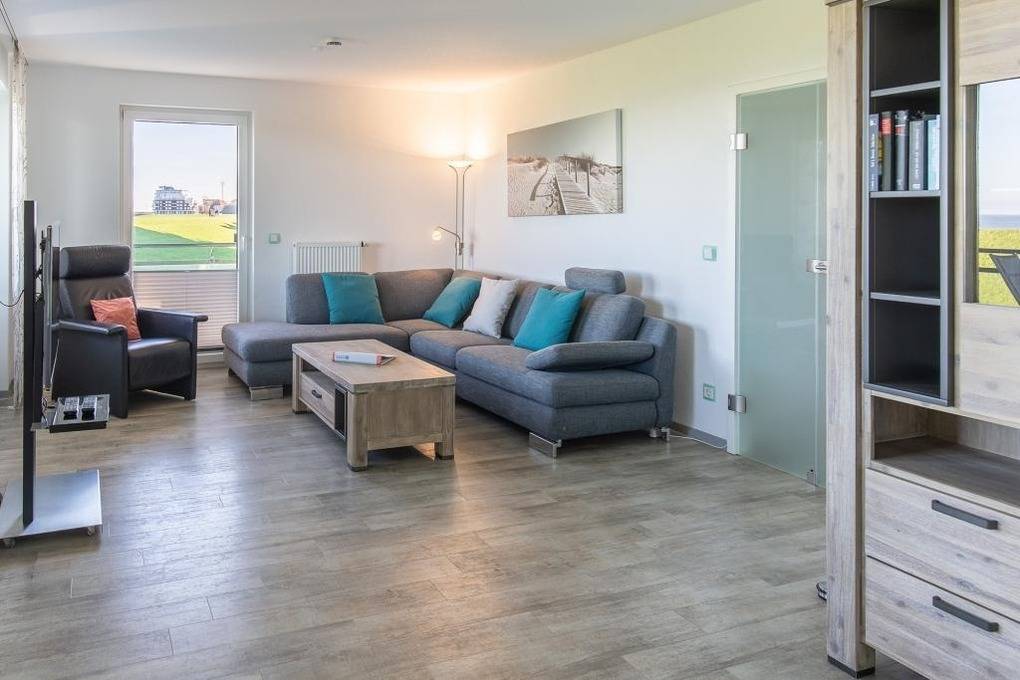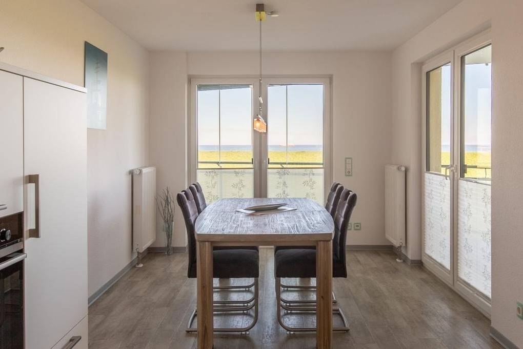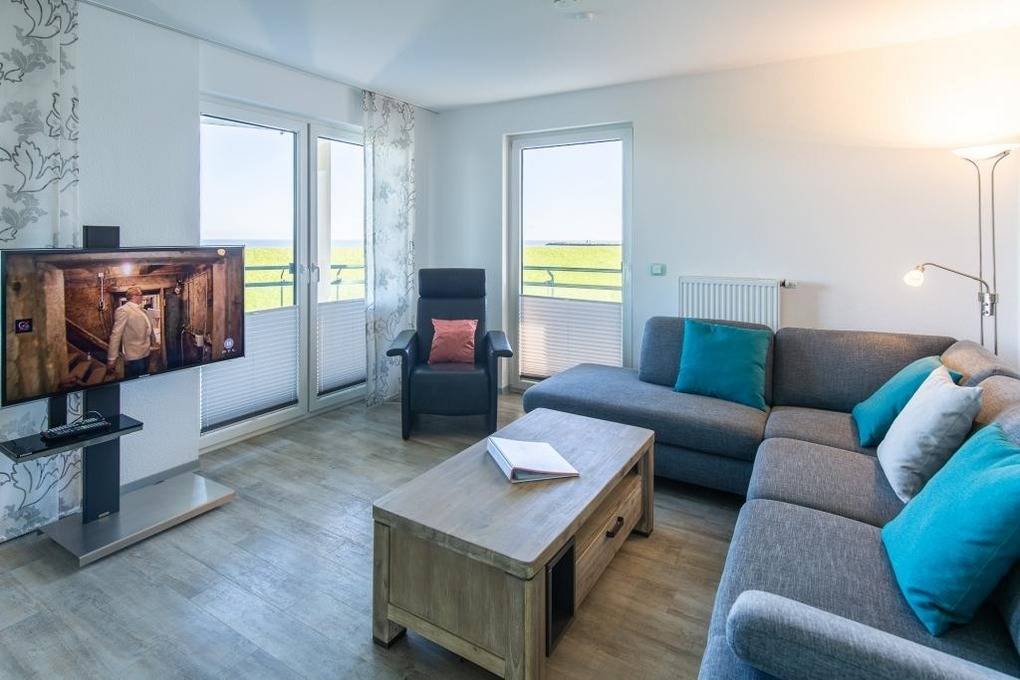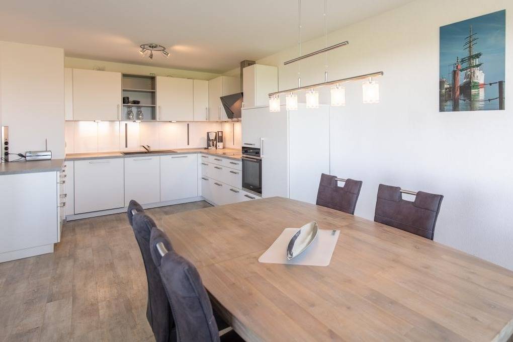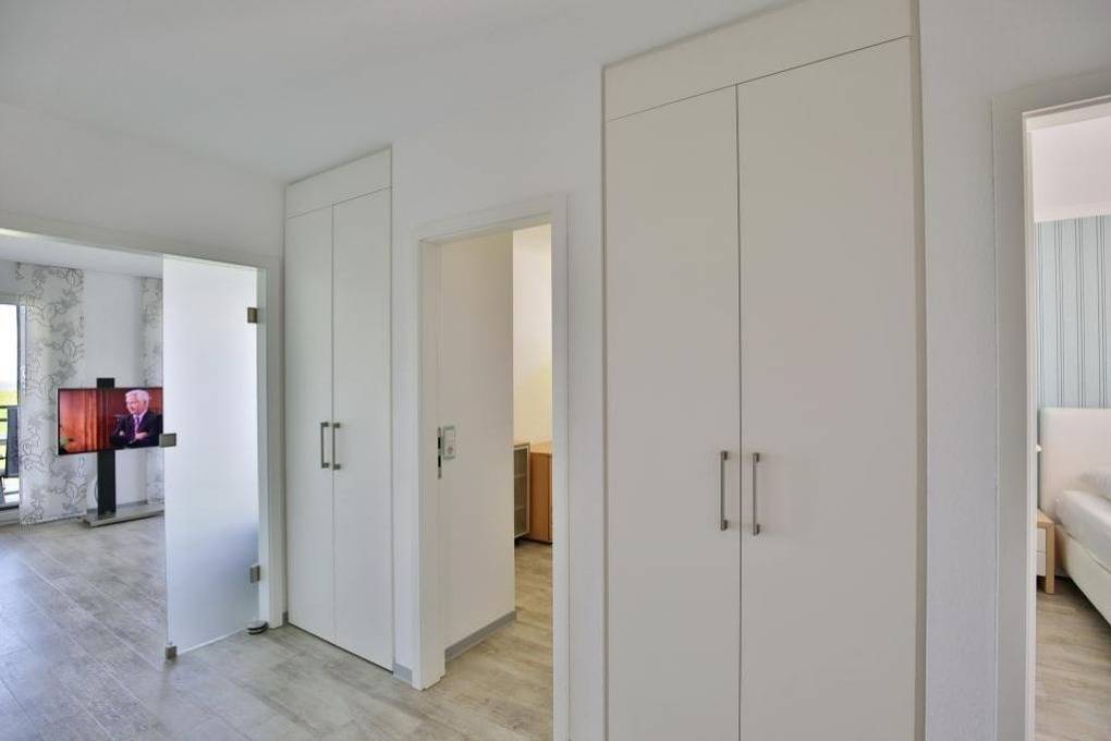 Großzügige 4-Zimmer-Wohnung über ca. 111m² auf der 2.Etage mit tollem Seeblick in die Grimmershörnbucht und auf den Weltschifffahrtsweg #1 für 4 Pers.. 1 Schlafzimmer mit Doppelbett, TV [&] Bad en Suite (WC, Urinal, ebenerdige Dusche [&] Wärmekabine), 1 Schlafzimmer mit franz. Doppelbett, Bad/Wc, Wohnzimmer mit vollausgestatteter Küchenzeile (neu 11/2018) (Back., Mikrow., Geschirrspüler) Sat-TV mit Bluray-Player, kostenloses W-Lan, großer umlaufender Balkon (nord/ost/süd) mit Strandkorb, Ankleidezimmer, Garage #11 im Innenhof mit elektr. Tor, kostenfreie Waschmaschine/Trockner im Erdgeschoss, keine Haustiere gestattet, Nichtraucher.