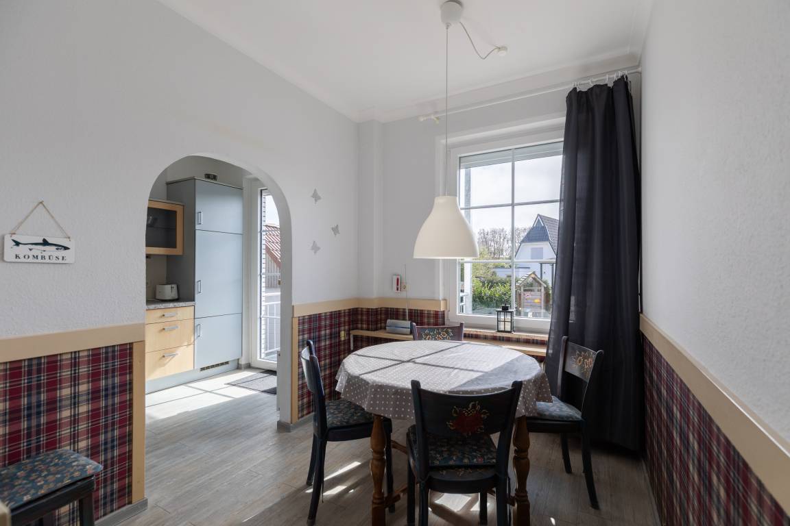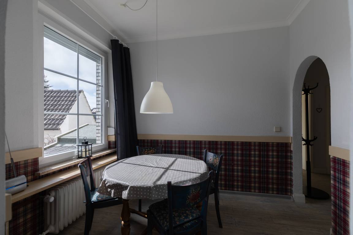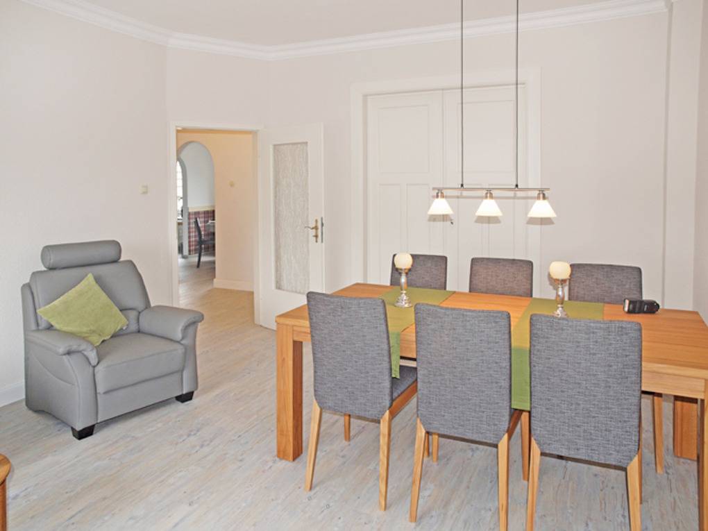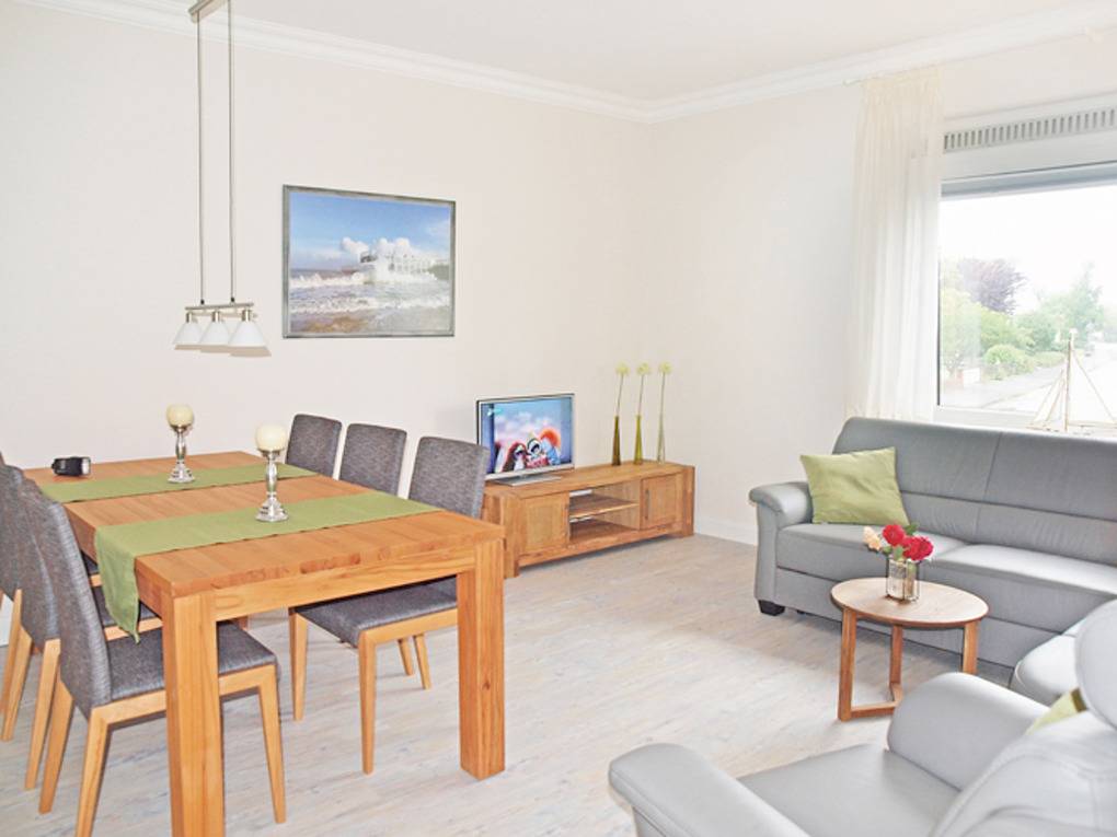 Mit einer Größe von ca. 80 m² Wohnfläche ist die Wohnung komplett bis zu 5 Personen ausgestattet, separate Küche mit Einbauküche (Backofen, Cerankochfeld, Toaster, Wasserkocher, Kaffeemaschine, Kühlschrank, Mikrowelle), von der Küche aus gelangt man auf den Balkon, separates Esszimmer mit Essplatz für 4 Personen, Wohnzimmer mit Sofa-Ecke (kann als Schlafsofa genutzt werden), das Wohnzimmer verfügt über ein Aussenrolllo, Essplatz für 6 Personen, 1 Flatscreen TV im Wohnzimmer, 1 Schlafzimmer mit Doppelbett, Kleiderschrank und Aussenrollläden, zweites Schlafzimmer mit Doppelbett, Kleiderschrank und Aussenrollläden, Flur, Bad mit Dusche und WC, Nichtraucherwohnung, keine Haustiere, PKW-Stellplatz am Haus.
