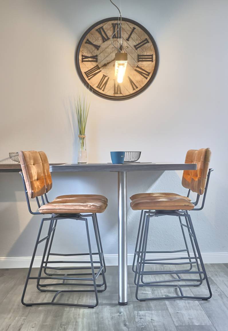 Der Wohnbereich, gestaltet mit einer stylischen Ledercouch und einem wandhängenden Flat-TV, öffnet sich zur westlich gelegenen Terrasse. Einladend für entspannte Momente und abendliches Relaxen. Ein großer Esstisch und die komplett ausgestattete Einbauküche mit Geschirrspüler lassen keine Wünsche offen. Der Abstellraum mit Waschmaschine komplettiert das Rundum-sorglos-Paket.