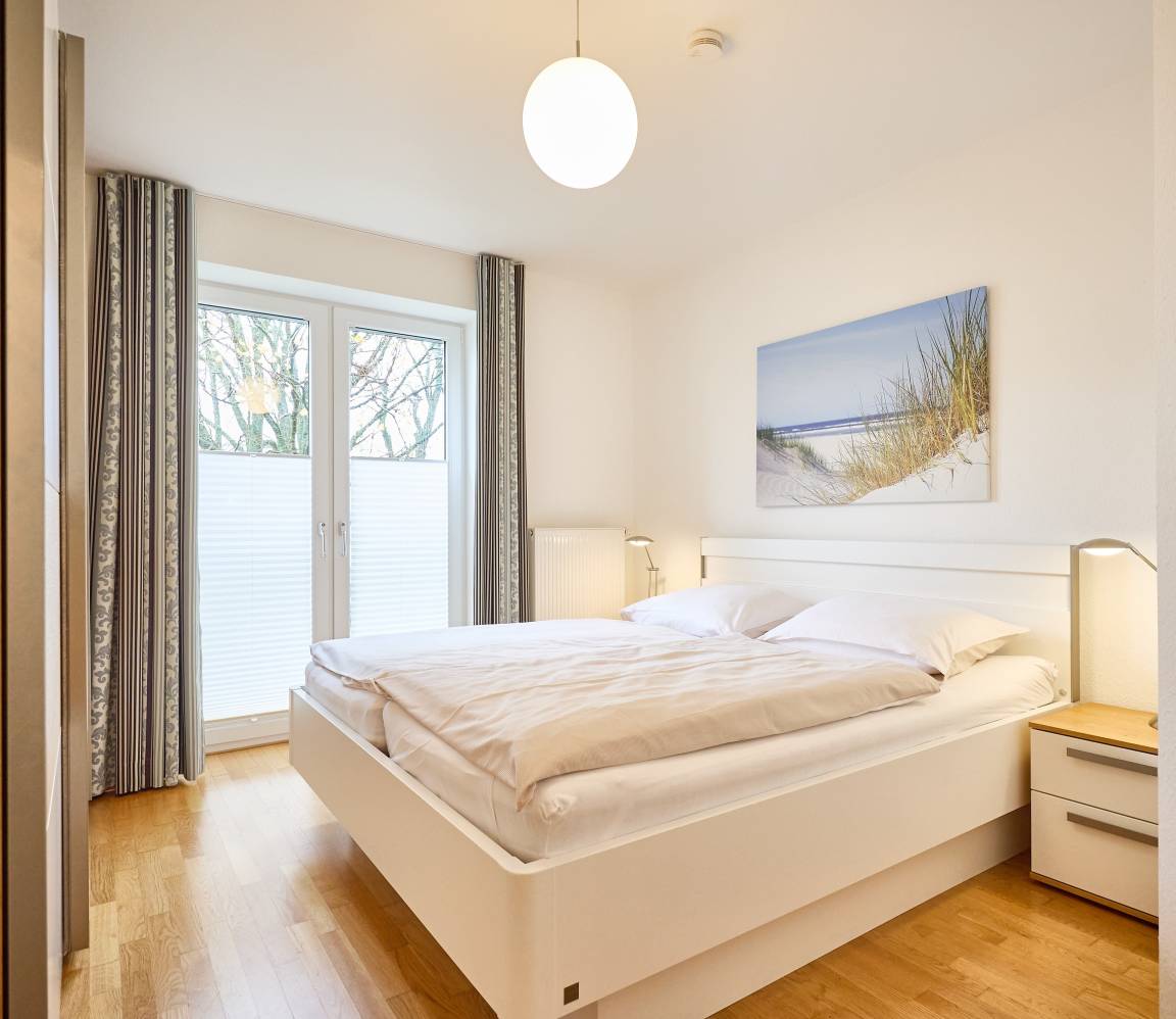 Zwei liebevoll eingerichtete Schlafzimmer mit komfortablen Doppelbetten sorgen für erholsame Nächte. Es ist ausreichend Platz für Ihre Kleidung vorhanden, sodass Sie sich auch bei längeren Aufenthalten wie zuhause fühlen können. Ein modernes Tageslichtbad mit Badewanne und Dusche sowie ein separates WC bieten zusätzlichen Komfort.